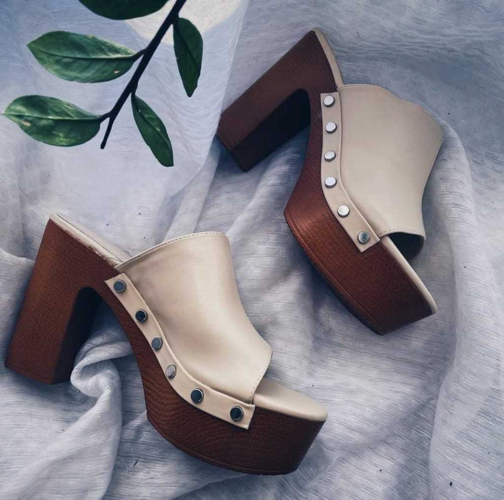 Обувь должна быть заметной, сохраняя внимание на мулах с толстыми каблуками