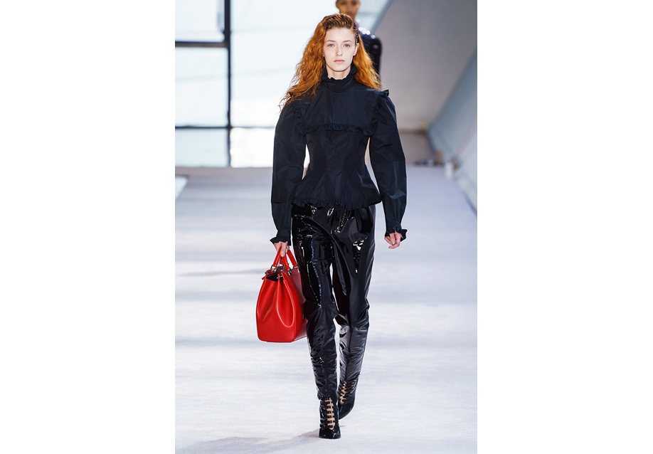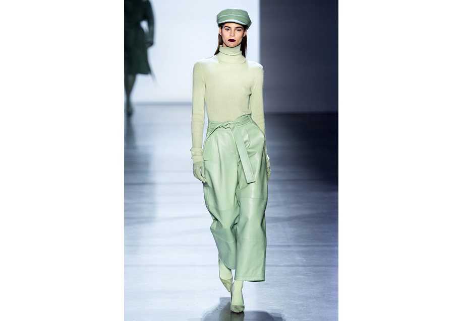 Чаще всего на подиумах сезона 2019-2020 можно встретить матовую кожу. Но в качестве эксперимента гардероб пополняют лаковыми вещами для создания лука в стиле гламур.
