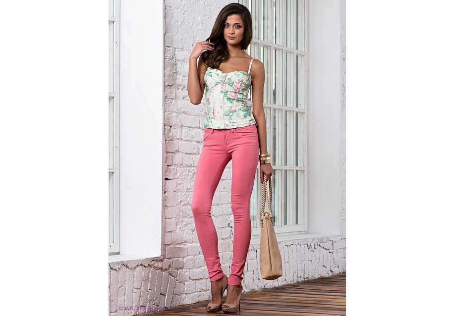 Особенно модно выглядят скинни из принтованной ткани с мелким флористическим узором. А если в качестве базы выбрана светлая палитра, то удачнее варианта для лета не найти. В комплекте с тонкими рубашками и невесомыми шифоновыми блузами образ станет парящим и очень утонченным.