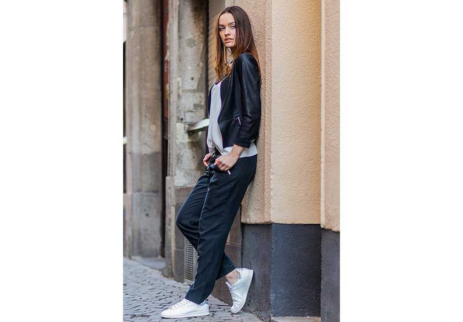 Спортивные брюки во многом перекликаются с моделями, оснащенными лампасами. В них нет ограничений по оттенкам и силуэту – выбор будет зависеть лишь от того, для каких целей создается образ. Стиль спорт-шик сочетает несочетаемое – бесформенные штаны с изящными босоножками на шпильке и классическими туфлями.