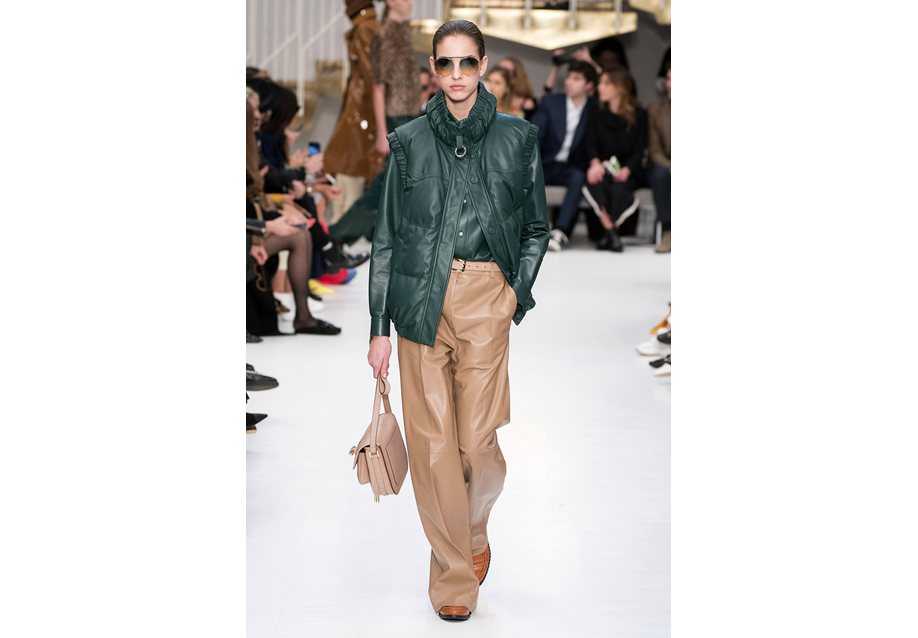 Кожаные брюки – решение для весны, когда жара еще не устоялась. Натуральная кожа для брюк не подойдет – в ней слишком жарко, а вот искусственный материал и экокожа, как на показах Jil Sander и Balmain – более практичный вариант.