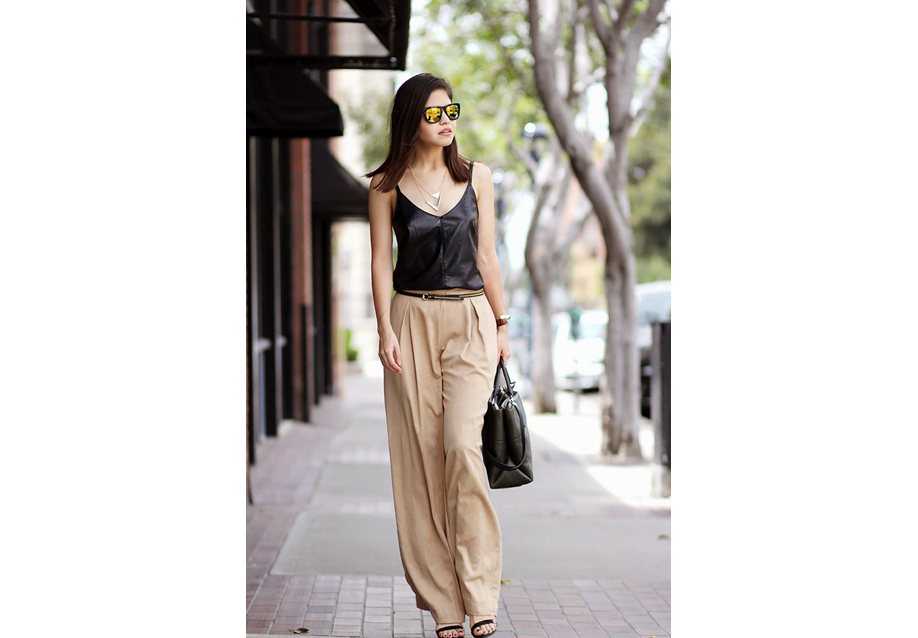 Такие модели брюк будут отличным дополнением к кроп топу или лёгкой блузке с открытыми плечами. Образ будет поистине лёгким весенним. Поверх всего этого в прохладные дни можно накинуть пальто или пиджак. Так и образ станет более деловым.