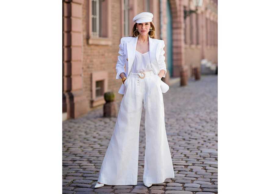 С блейзером. Безусловно, спортивные палаццо с жакетом или блейзером никак не надеть. Зато широкие длинные брюки в сочетании с пиджаками и блейзерами в мужском стиле носить не только можно, но и нужно. В идеале верх и низ образа должны быть выполненными из одного материала. Хорошо, если это будет лен, вискоза или другие качественные ткани. По цвету жакет и брюки должны либо сочетаться, либо контрастировать. В обоих случаях эффект будет потрясающим.
