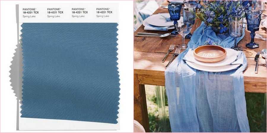 Нежный, спокойный оттенок голубого, умиротворяющий, будто вода в теплом озере. Прекрасно будет смотреться в роли главного цвета на Вашем свадебном торжестве.
