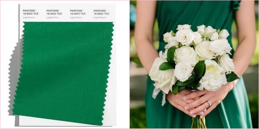 Прохладный, интересный «Лепрекон» получился с помощью двух цветов – зеленого и синего. Этот красивый, глубокий тон символизирует знаменитых мультяшных эльфов из ирландских сказок. Прекрасно впишется и в осеннюю, и в зимнюю церемонию, когда всем уже так не хватает естественной зелени.