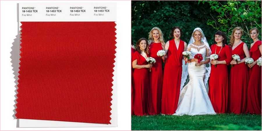 Энергичный, яркий, насыщенный красный, в переводе на русский звучит, как «Огненный вихрь». Неудивительно, почему он попал в список модных, ведь такая краска идеально впишется и в осеннюю, и в зимнюю свадьбу. Добавит Вашему празднику страсти, чувственности, динамики и позитива.