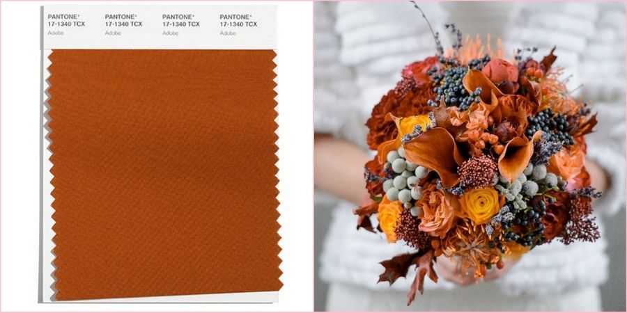 Следующим популярным цветом на грядущую осень и зиму стал земной, базовый, теплый оттенок коричневого. Если Вы хотите реализовать концепцию торжества в нюдовых тонах, то обязательно используйте «Adobe».