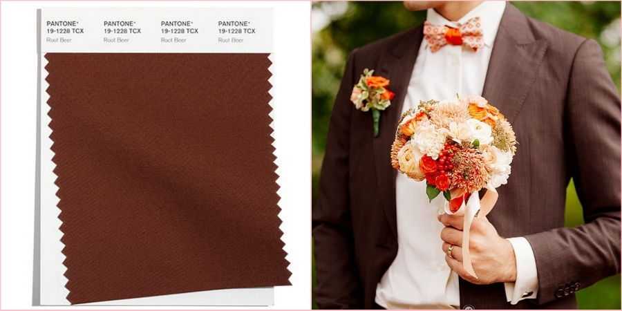 Если хочется назвать какой-то цвет вкусным, то этот тёплый и богатый коричневый оттенок – лучший кандидат. Он создаёт ассоциации с кофе, молочным шоколадом и карамельными десертами. Согреет и создаст правильную атмосферу на осенних и зимних свадьбах.