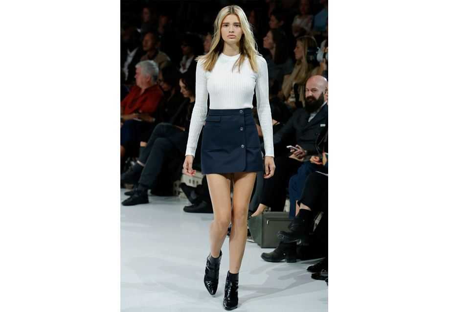Юбка также идет всем типам фигуры, но «яблокам» и «грушам» стоит выбирать варианты выше колена, а «песочным часам» ‒ с длиной до середины бедер. Носить ее можно с топами, футболками, тонкими водолазками и обувью на высоком каблуке.