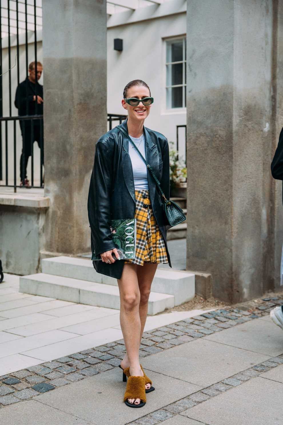 Её можно носить с тренчем, пальто прямого покроя, бомбером, жакетом из твида или костюмной ткани. Прекрасно подходят сюда строгие блузы мужского кроя, толстовки, свитеры, водолазки. Свежо и актуально смотрятся комплекты морской тематики: юбка плюс тельняшка, дополненные балетками или кедами.