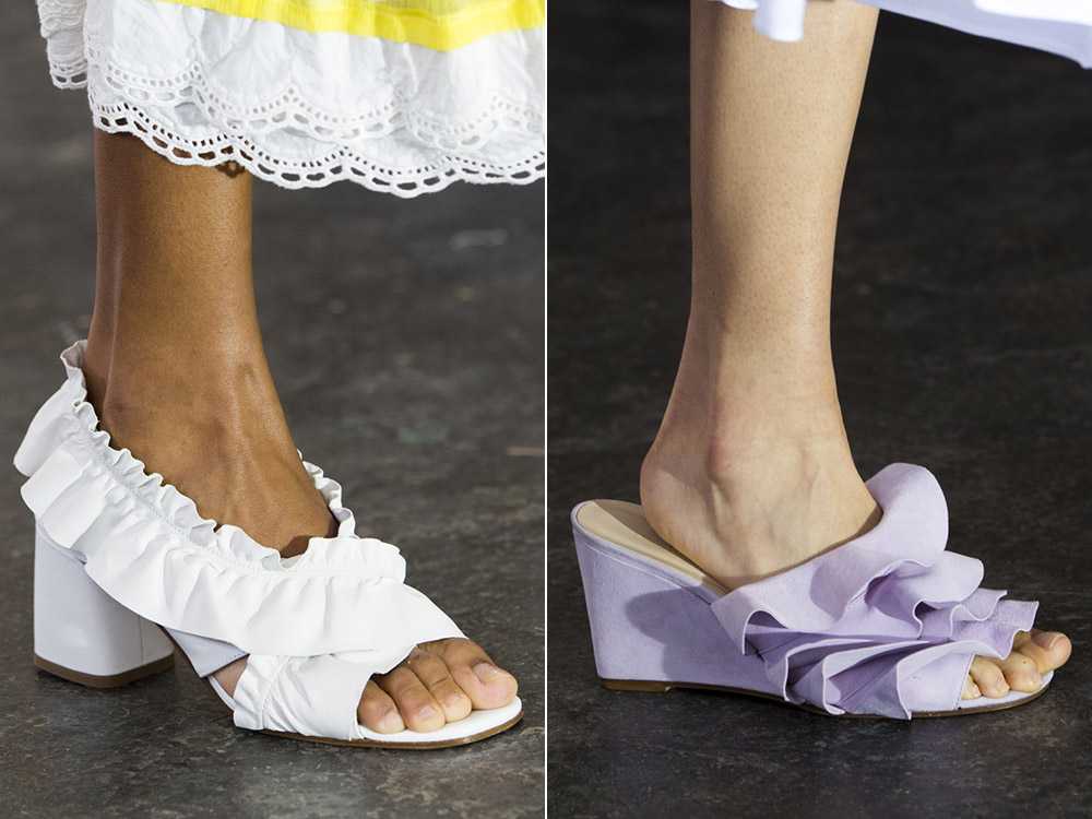 Ботильоны, туфельки и босоножки приобрели в 2019 году верного союзника в виде носочков, которые теперь дополняют чуть ли не каждую пару обуви на показах. Этот тренд проявил себя еще несколько лет назад, однако показаться в туфлях с капроновыми носками рисковали только самые неординарные трендсеттеры. Впрочем, дерзость инноваторов из мира моды привела к тому, что пример нашел сторонников и подражателей, а тренд стал востребованным.