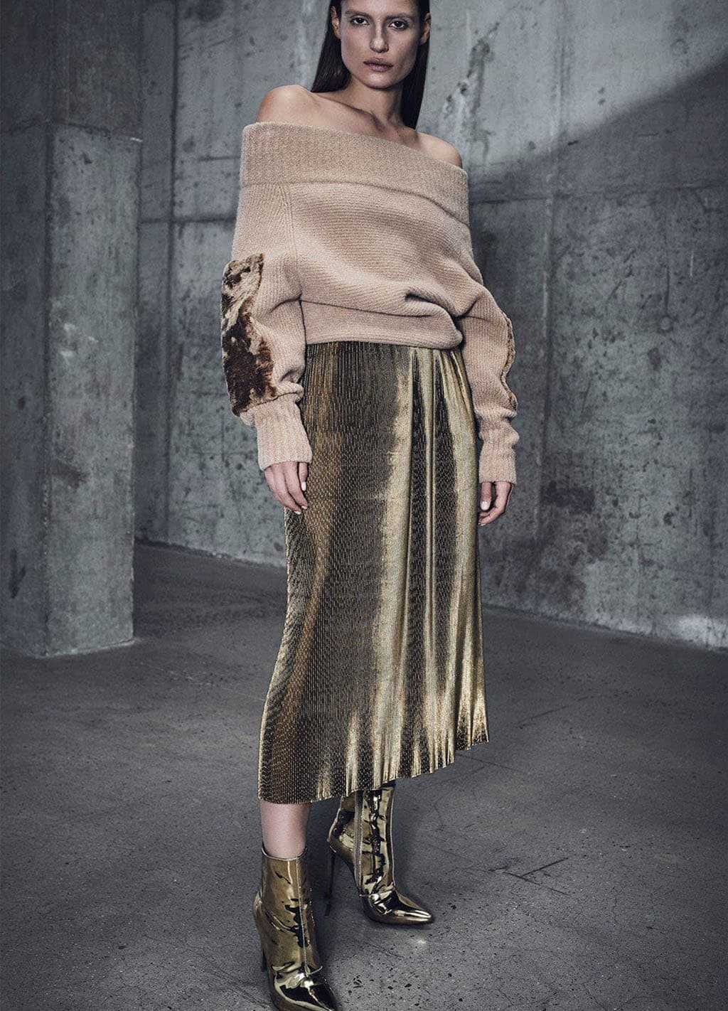 - По-прежнему популярны металлизированные ткани, напоминающие рыбью чешую или фольгу от конфет, все что блестит и сверкает в тренде.
