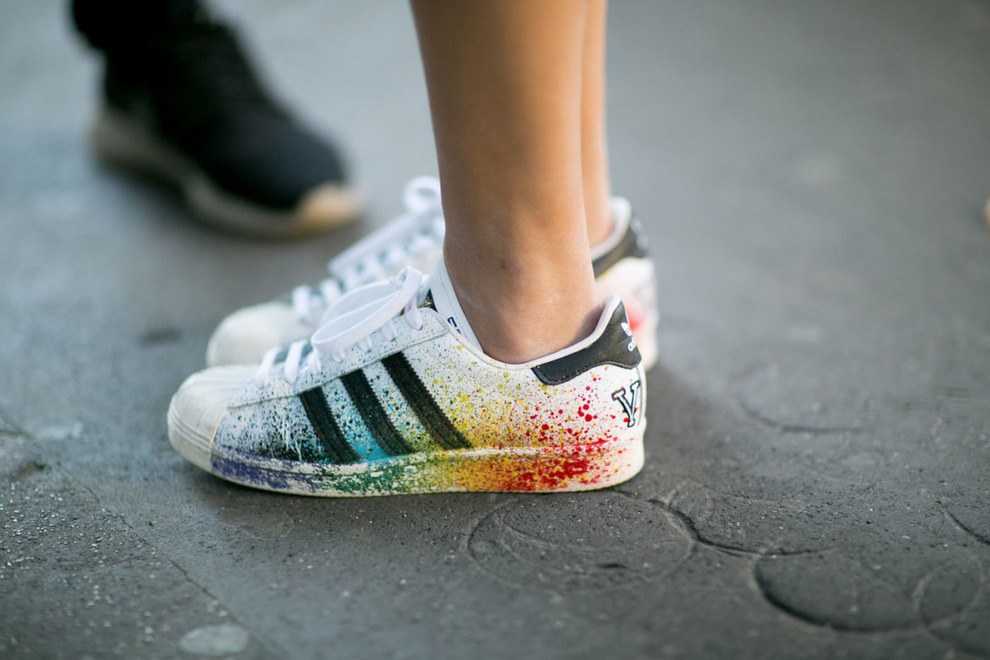 Также нельзя забывать о цветочном принте и полосах, которые наиболее уместно выглядят на монохромных моделях. Всем известный бренд Адидас первым продемонстрировал полосы на кроссовках, сейчас же эти элементы присутствуют на многих парах обуви в разном исполнении.