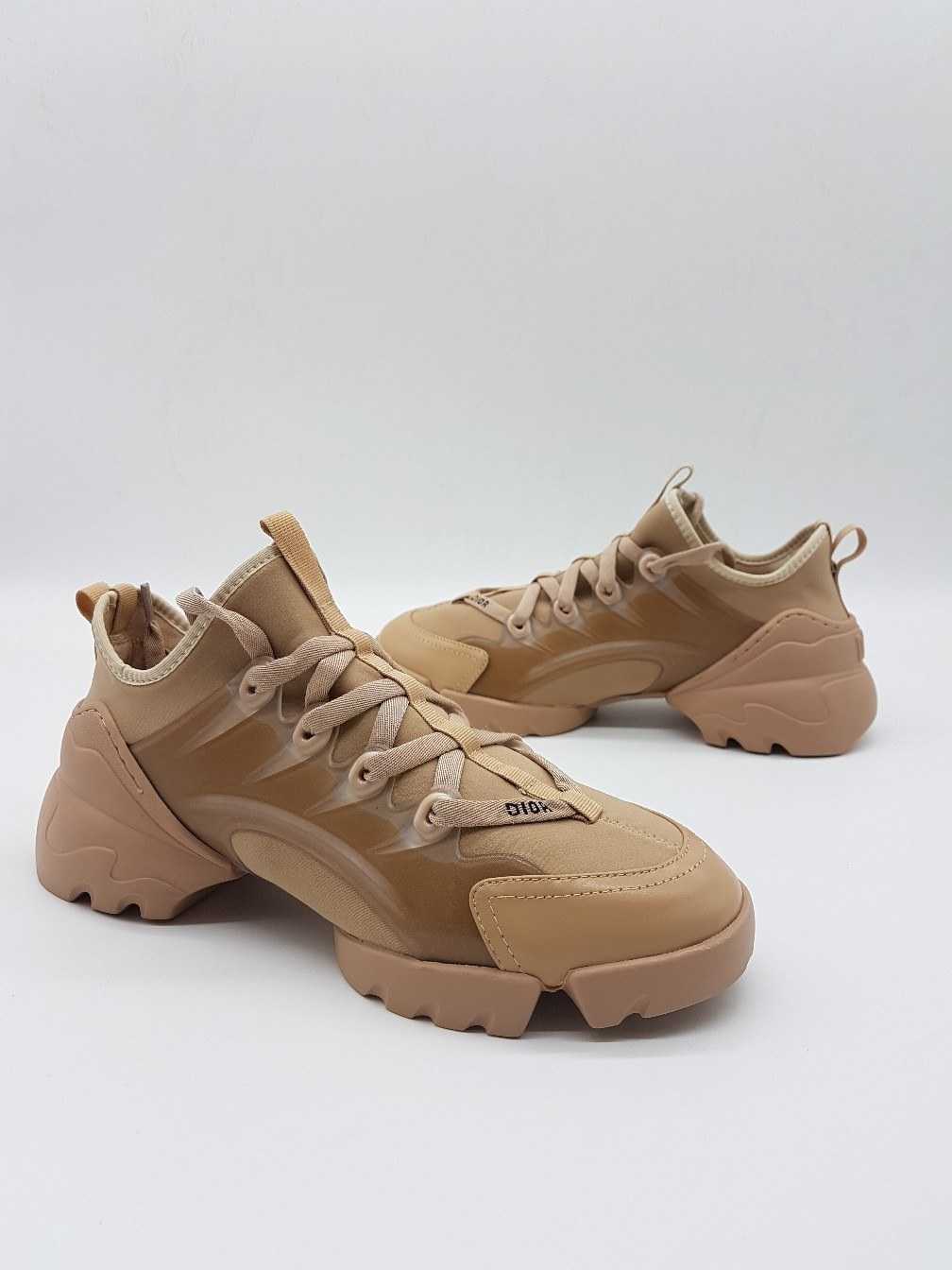 Как уже было сказано выше, повышенный спрос со стороны прекрасного пола на кроссовки обусловлен возможностью и актуальностью их сочетания с платьями и костюмами. Причем, далеко не спортивными