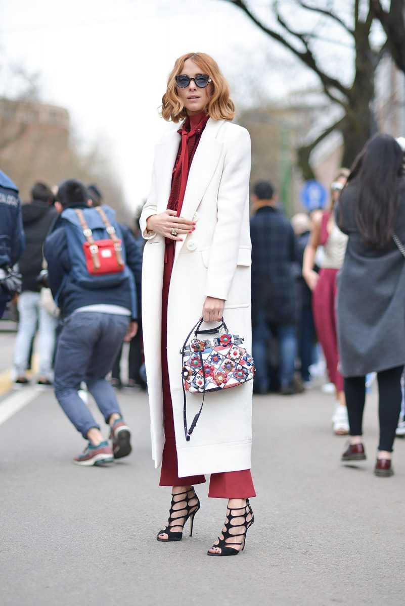 Если вы устали от черного цвета, обязательно присмотритесь к моделям цвета шампань, бургунди, персик и добавьте к образу стильную яркую сумку.