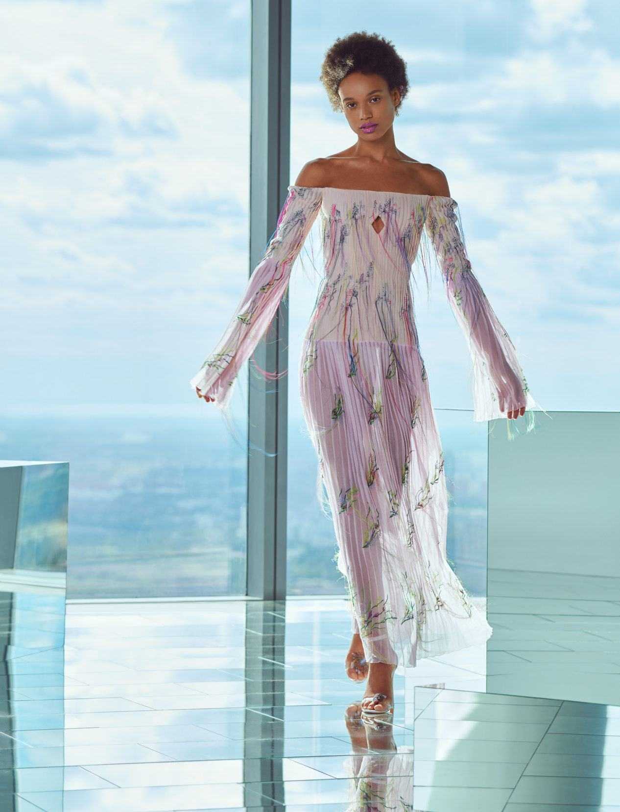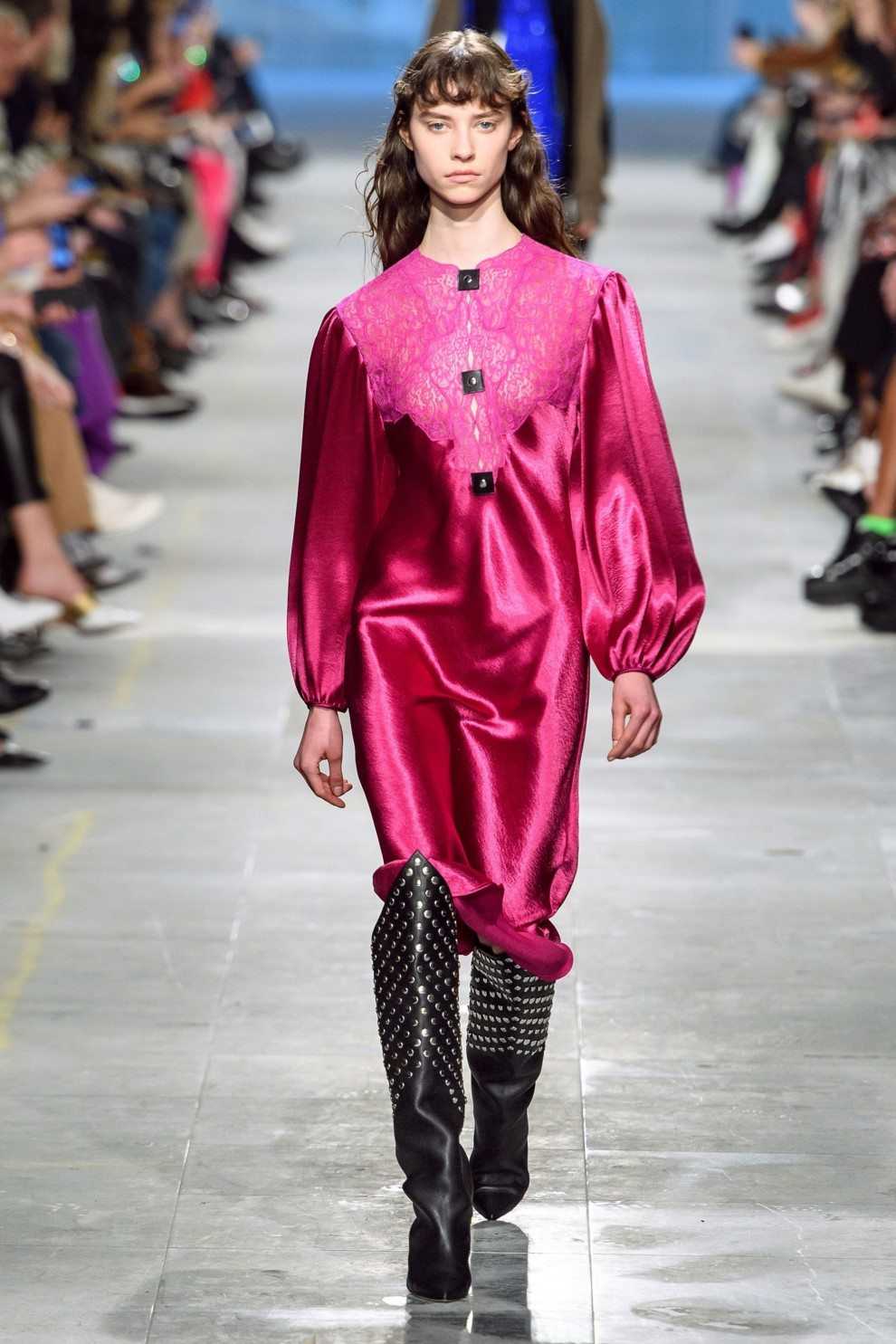 Некоторые дизайнеры предлагают примерить прозрачное платье-миди со стеганым пуховиком или классической шубой. Платья в стиле 80-х из атласа следует носить с обувью на невысоком квадратном каблуке, в сочетании с бежевым плащом или пальто.
