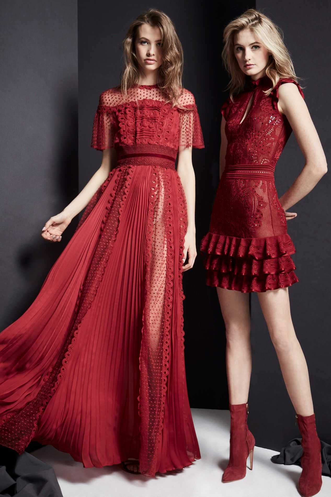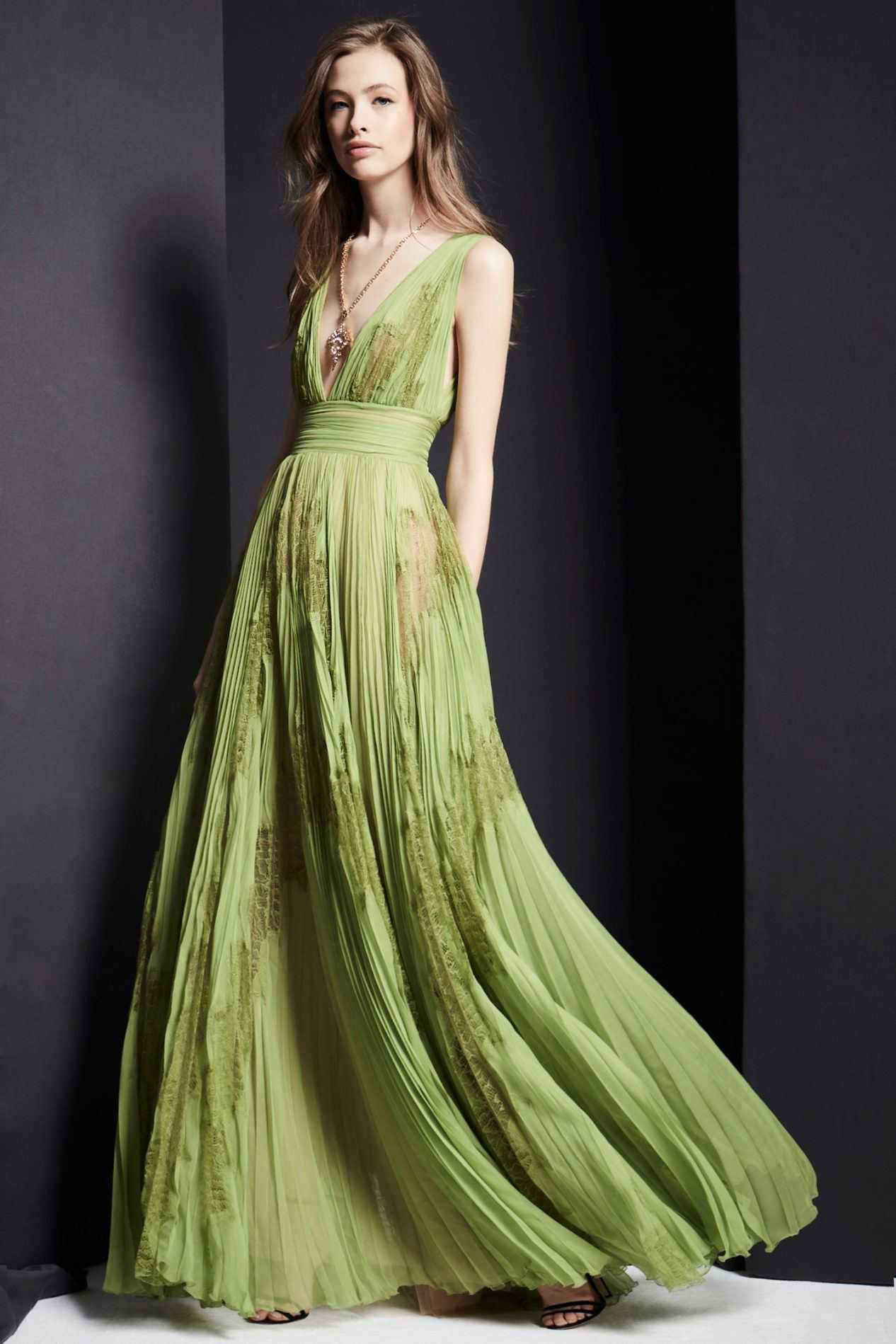 На модных показах фигурировали платья с глубоким декольте, открытой спиной, юбкой трапецией (это решение визуально увеличит плечи, и тем самым отвлечет внимание от лишней полноты на бедрах). Также отличным выбором станут платья с рукавами фонариками