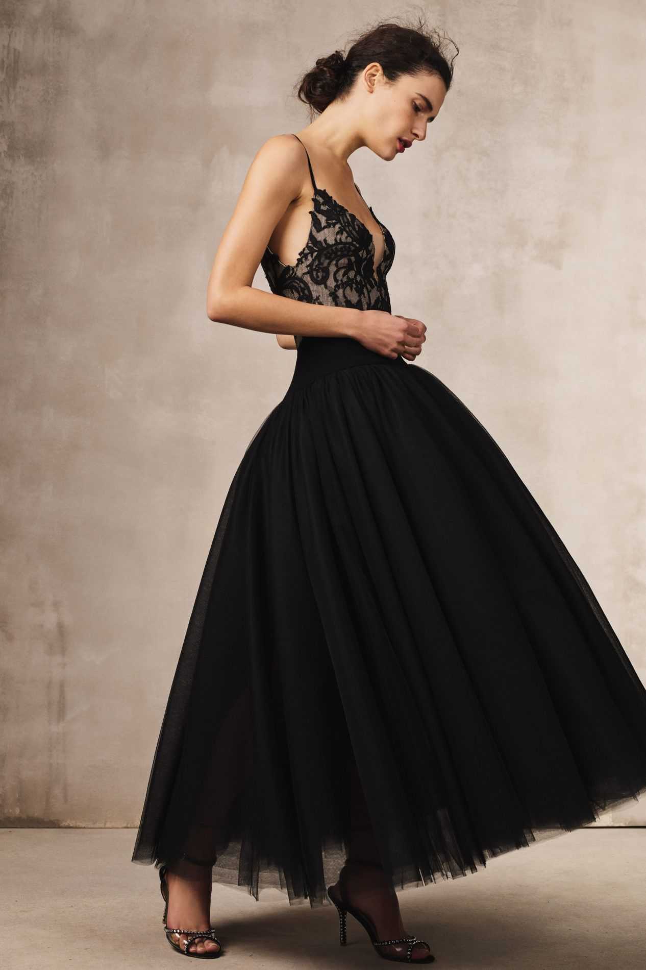 Чтоб отвлечь внимание от пышной груди, подбирайте платья с пышной юбкой или варианты с декором на подоле.