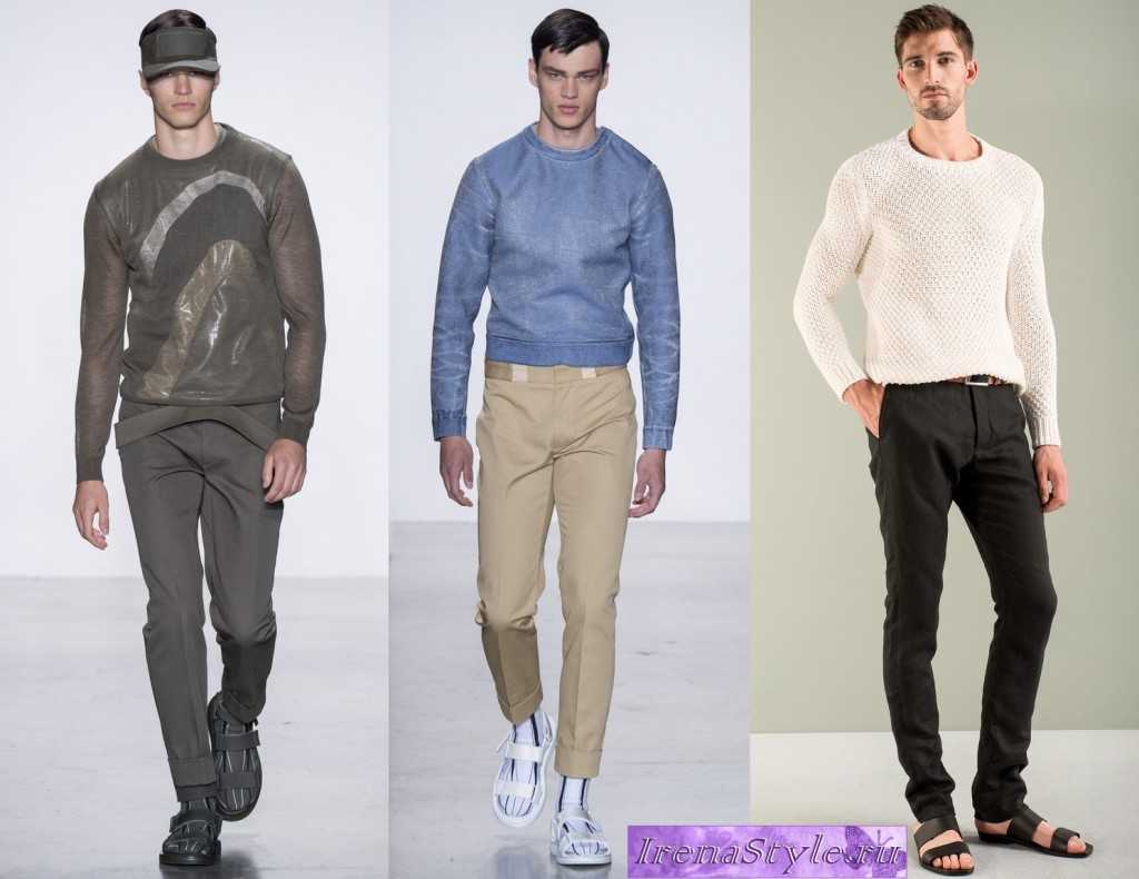 Также актуальны мужские брюки с лампасами. Если раньше подобное украшение считалось атрибутом исключительно спортивной формы, то теперь использовать его можно при создании кэжуал образов и луков в стиле спорт-шик.