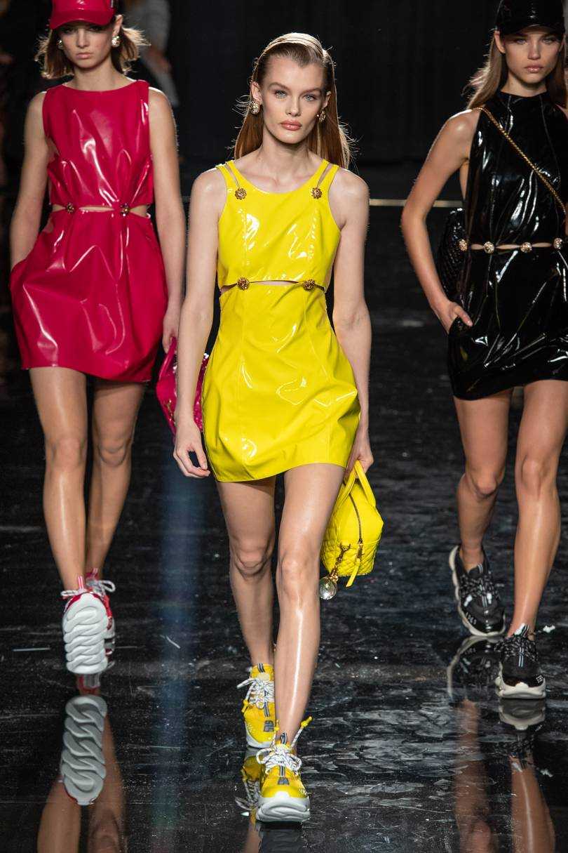 Очень важно, чтобы они были однотонных ярких цветов и дополнены массивными украшениями или ремнями