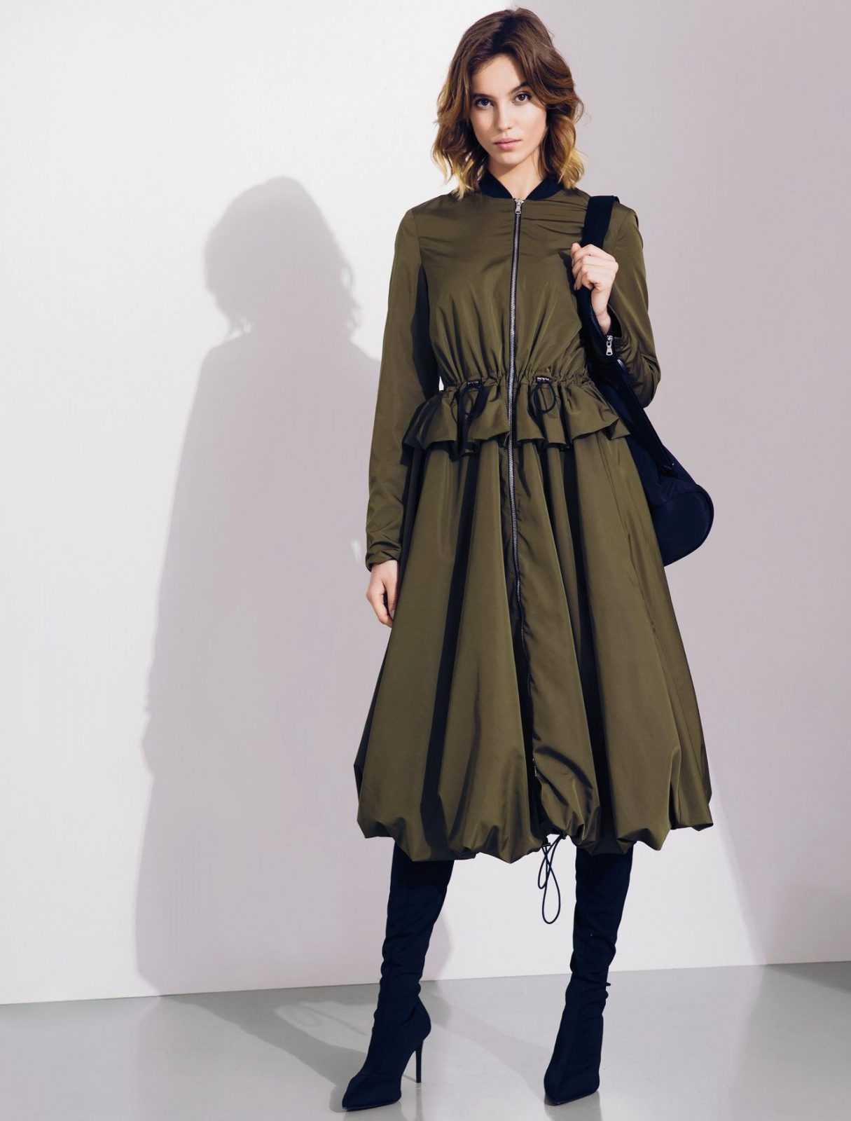 - фасон — стильный, позаимствованный у тренча или классического плаща, легко позволяющий создавать кэжуал-образы: