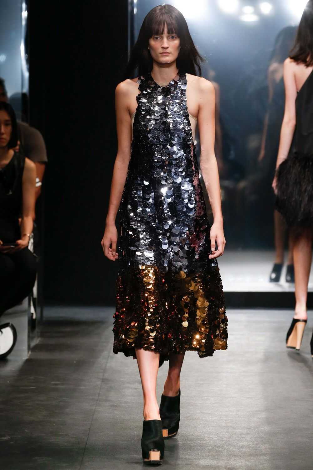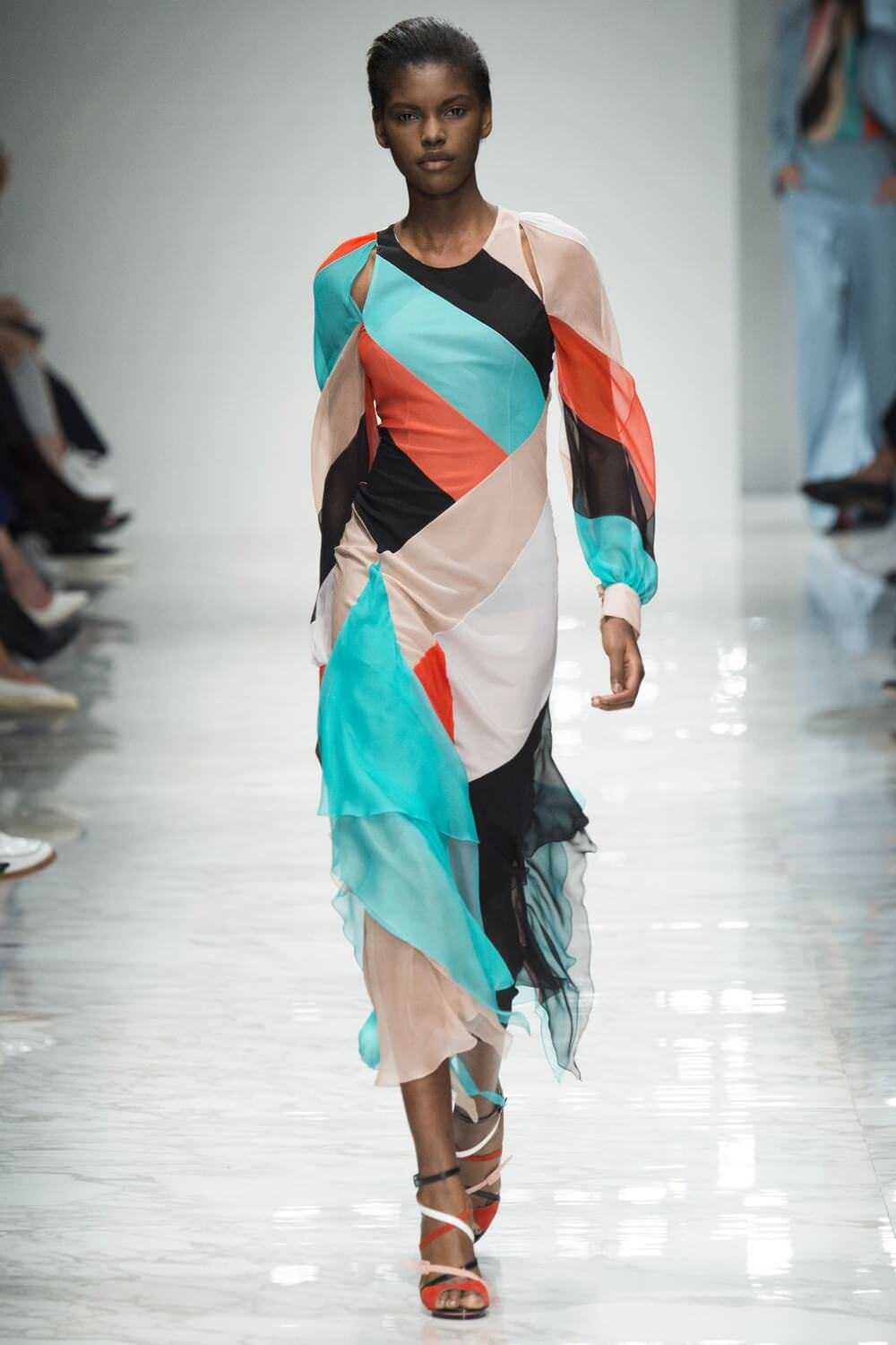 Модные фасоны платьев 2016 также включают асимметрию: яркая вещь на одно плечо, как у Jonathan Saunders, может добавить красок в ваш гардероб.