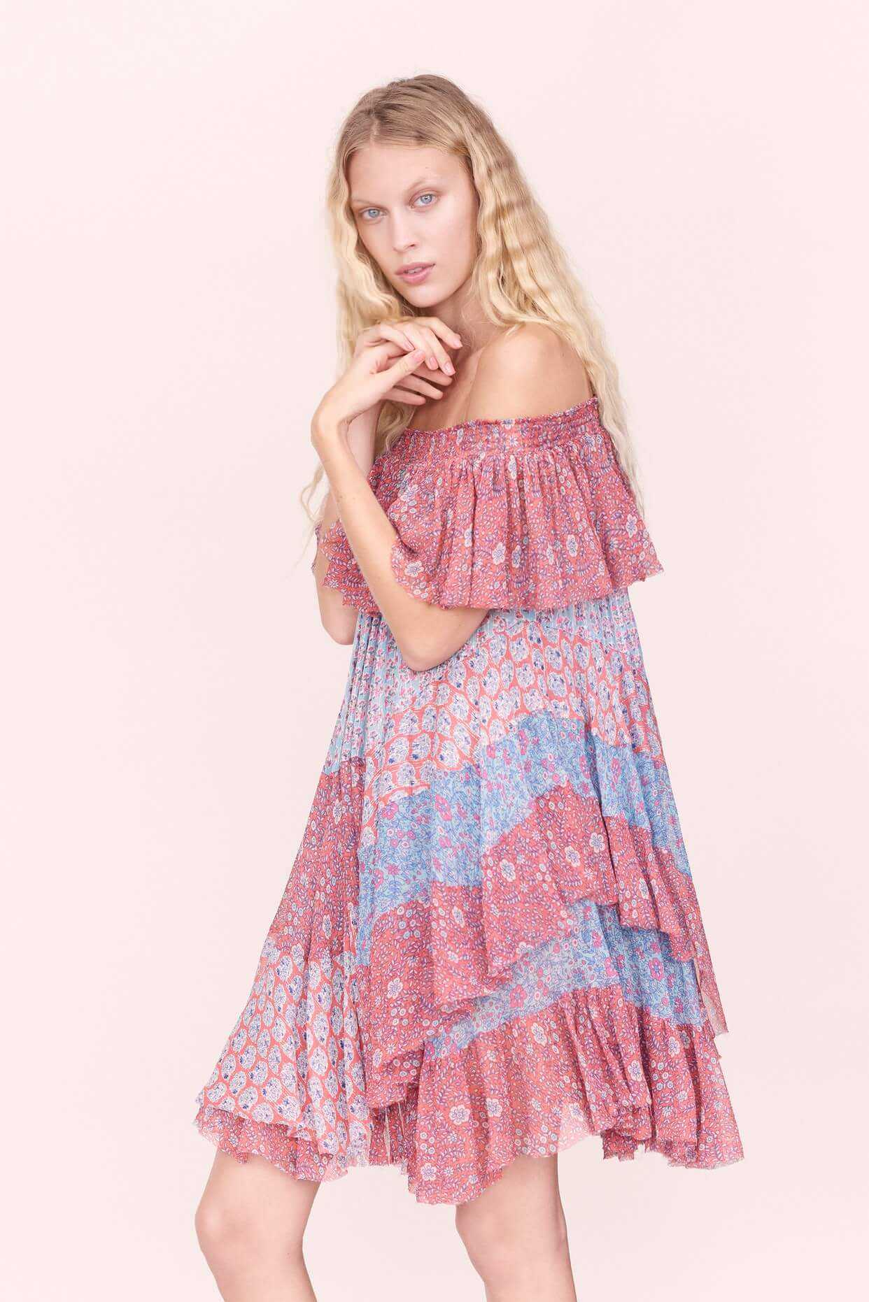Наряд с оборками и открытыми плечами. Настоящим хитом будущего сезона станут объемные рукава, воланы и открытые плечи. Если в вашем гардеробе еще нет похожих моделей, то сейчас самое время присмотреться к этому оригинальному летнему платью. Также вы можете приобрести похожий наряд в более интересном фасоне с отрезными плечиками.