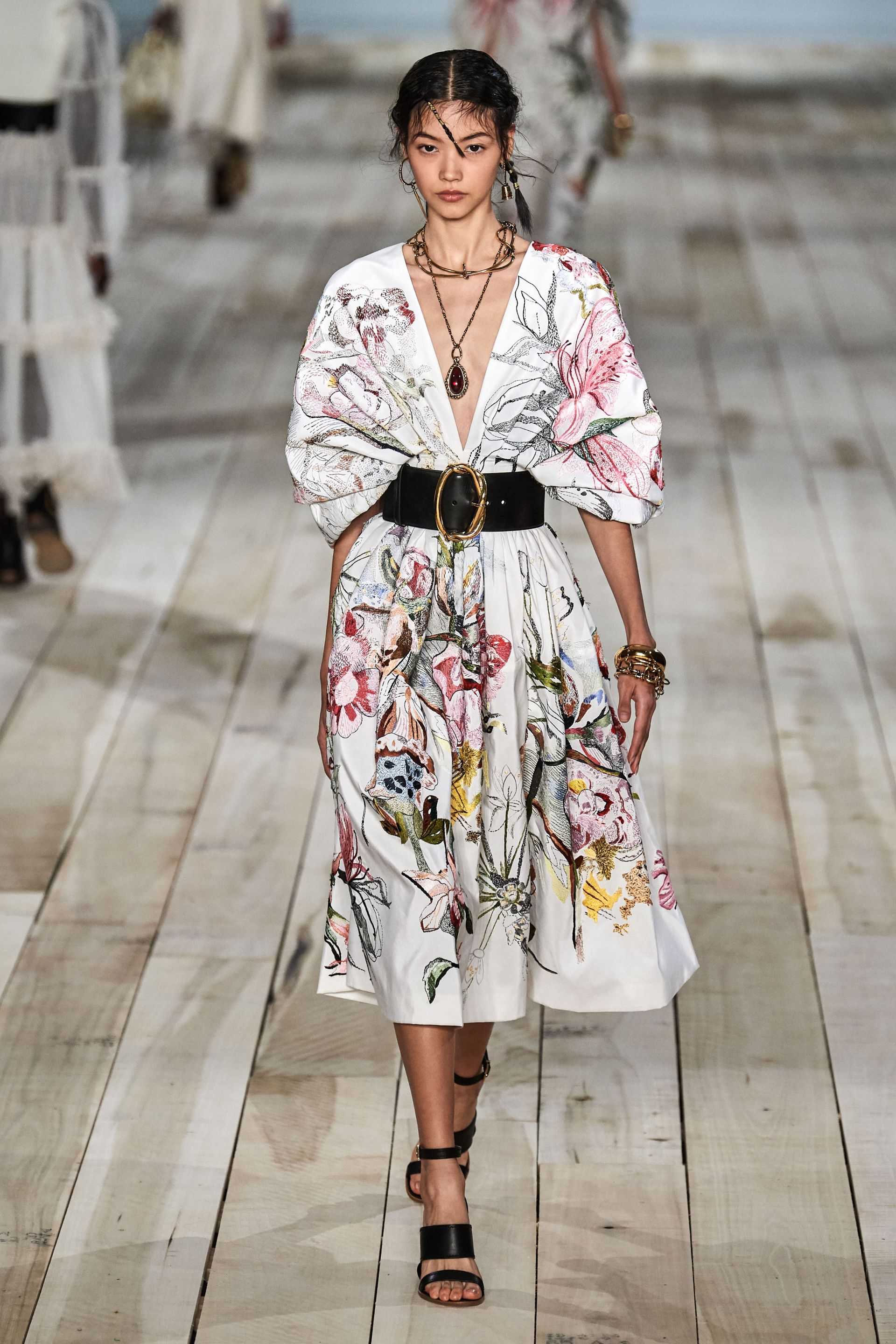7. Цветы – главный атрибут весенне-летнего периода. И на одежде они выглядят очень гармонично. Подбирая цветочный принт, учитывайте, что юным и стройным девушкам крупные цветы подходят идеально, а вот пышным дамам и женщинам за 50 лучше вовсе отказаться от цветов на одежде или выбрать мелкий цветочный принт. 8. Мода весна лето 2020-тенденции, фото которых вы только что увидели, уверенно держит курс на женственность и красоту. И в доказательство этому тренду кутюрье представили на подиумах невероятное количество рюшей, оборок и воланов, которые гармонично дополняют изысканные образы.