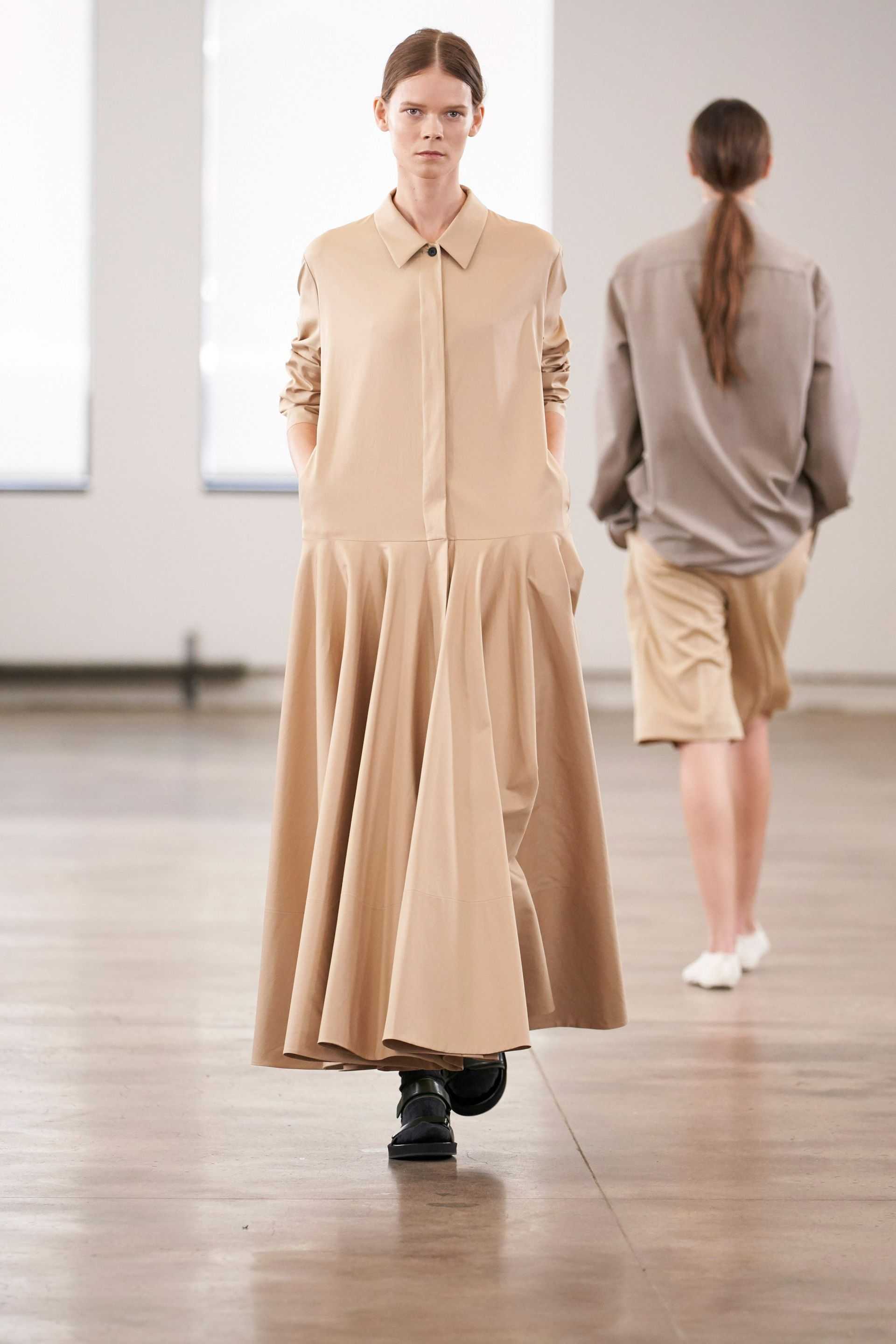 Но во-первых, о формах: в сезоне будут в тренде приталенные силуэты с длиной миди (т.е. до колен). Приталенность в этом случае является скорей обозначением форм, чем плотной обтяжкой.