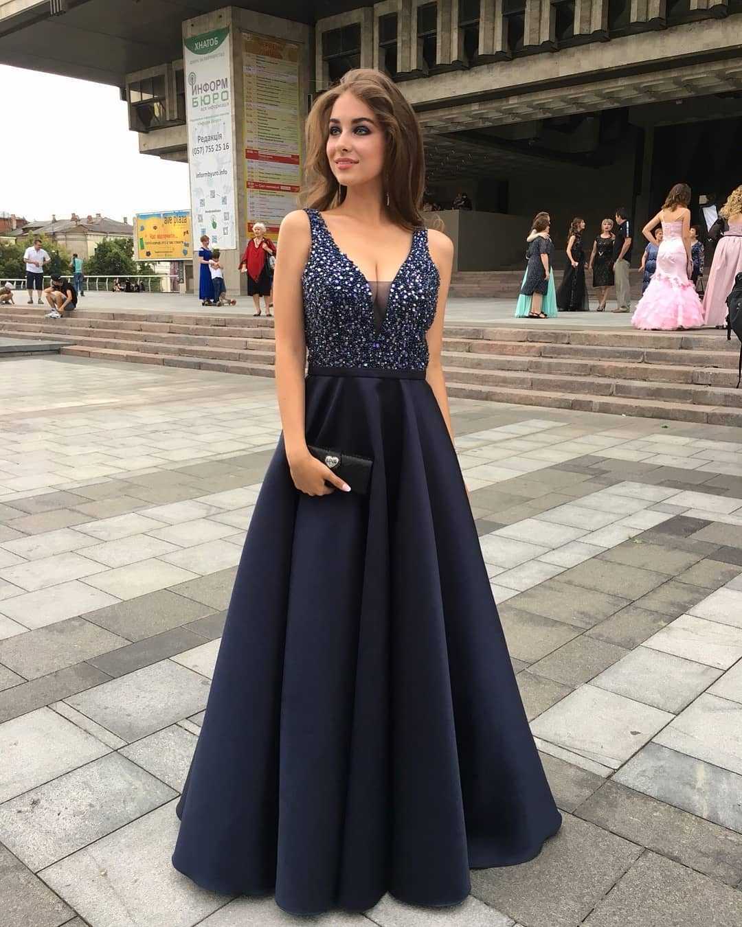 Еще один смелый вариант — модные выпускные платья с глубоким вырезом декольте. Но далеко не всем данный вариант подходит, особенно девушкам с большой грудью. Даже дело не в вульгарности или в недопонимании окружающих. Большая грудь нуждается в дополнительной поддержке, а здесь ее просто не будет.