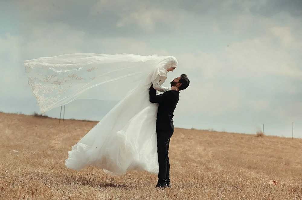 Главная особенность свадебного платья в арабском стиле – покрытая голова. Для этого используется фата или хиджаб. Платье должно иметь длинные рукава и закрытое декольте. Для декора применяют драгоценные камни и золотистую вышивку.