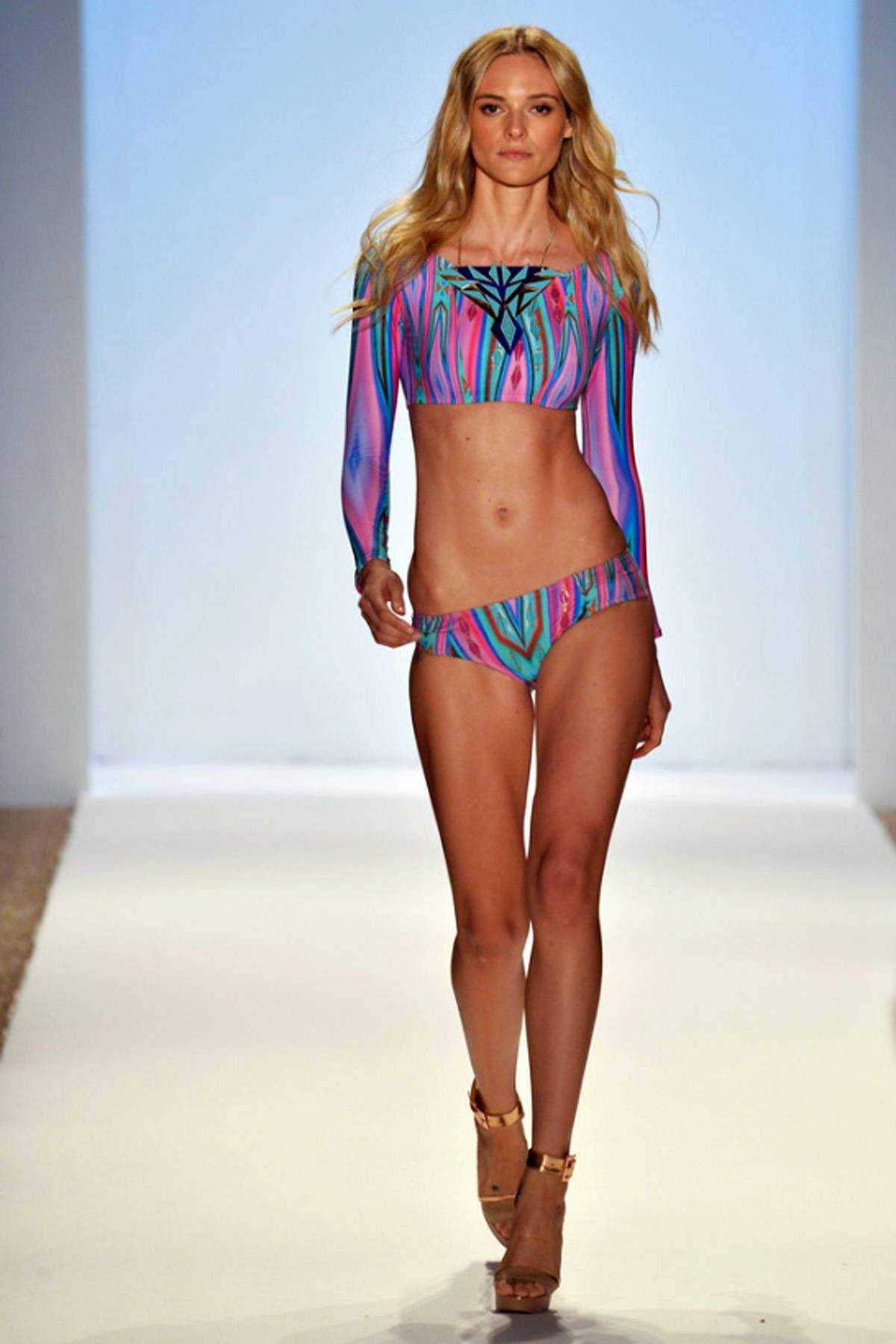 Для моделей бикини актуален подбор с низом средней посадки и верхом, выполненным с использованием привлекающих внимание деталей, принтов