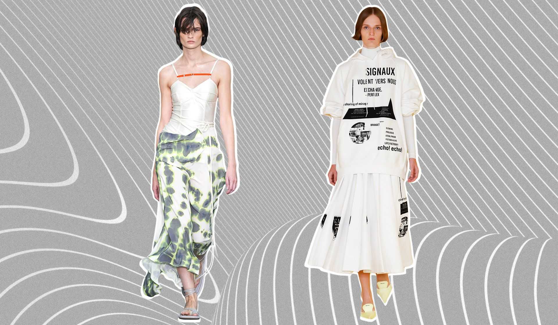 Слева направо: Sportmax, весна-лето 2021; Prada, весна-лето 2021