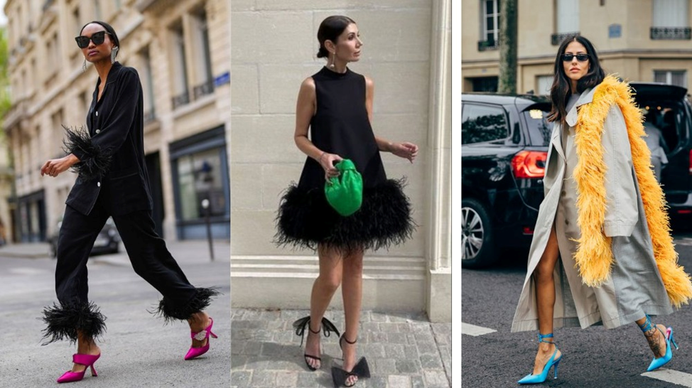 Не бойтесь декорировать одежду модными летом 2022 года перьями, потому что перья крепятся на кнопках, спокойно отстегиваются от вещей перед стиркой.