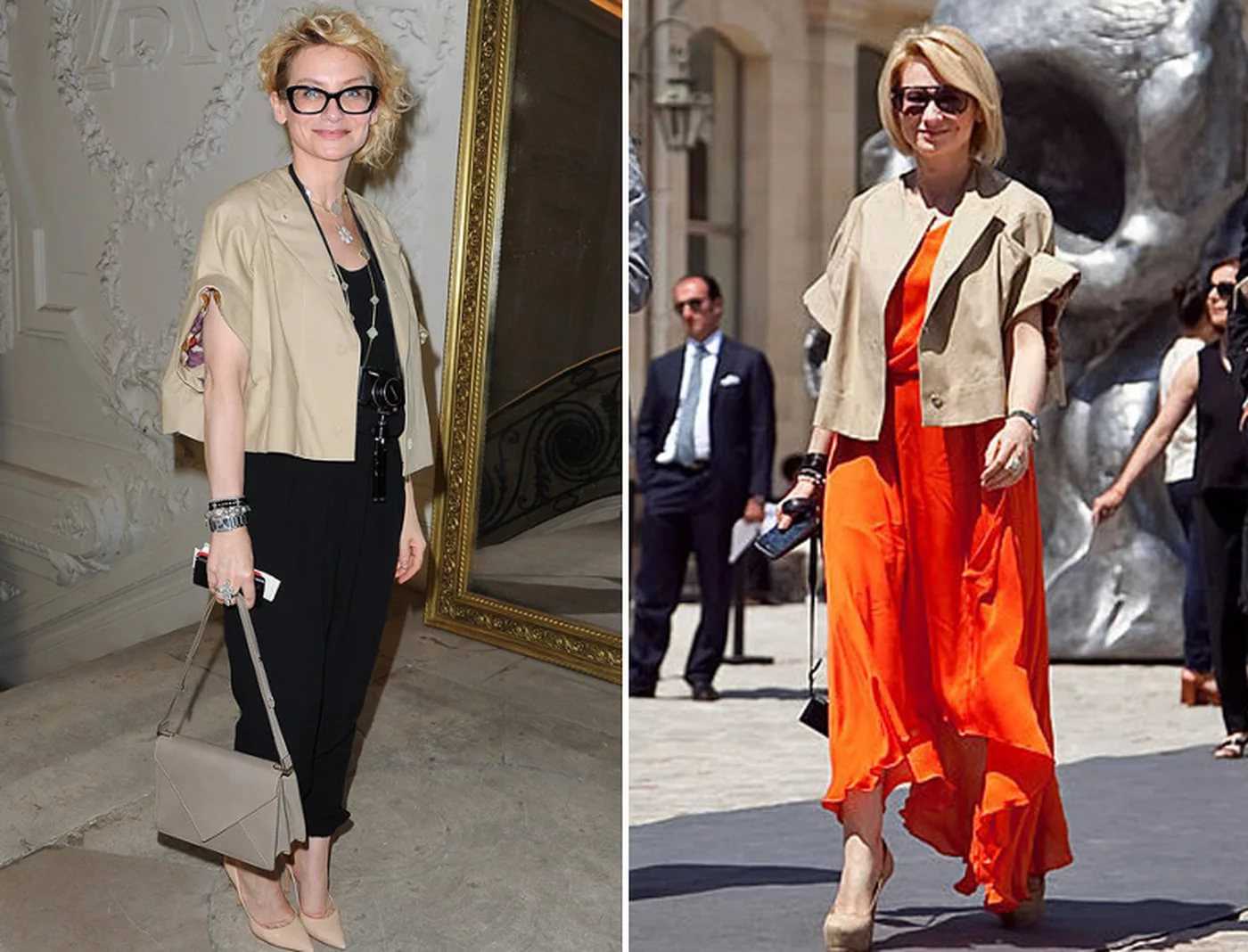 Пальто. Если опираться на советы от Эвелины Хромченко, без модного двубортного пальто нынче не обойтись ни молодым девушкам, ни женщинам за 50. Цветовая палитра может быть разной. Допускаются, как сочные оттенки бордового, красного или синего цвета, так и приглушённые бежевые.