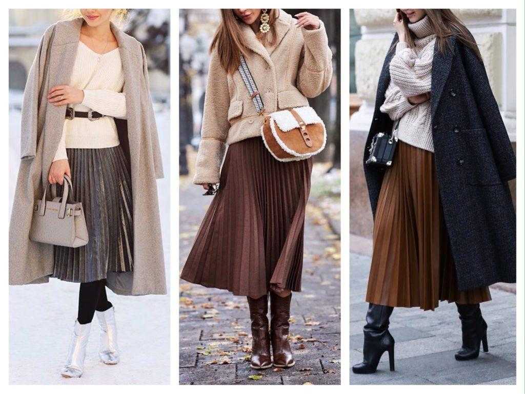 Этой осенью и зимой дизайнеры также возвращаются к плиссе, которое они с радостью представили в своих коллекциях. В этом сезоне такие юбки можно увидеть из самых разных материалов и текстиля. Магазины предлагают их как из воздушного шелка, так и из классического хлопка или кожи.