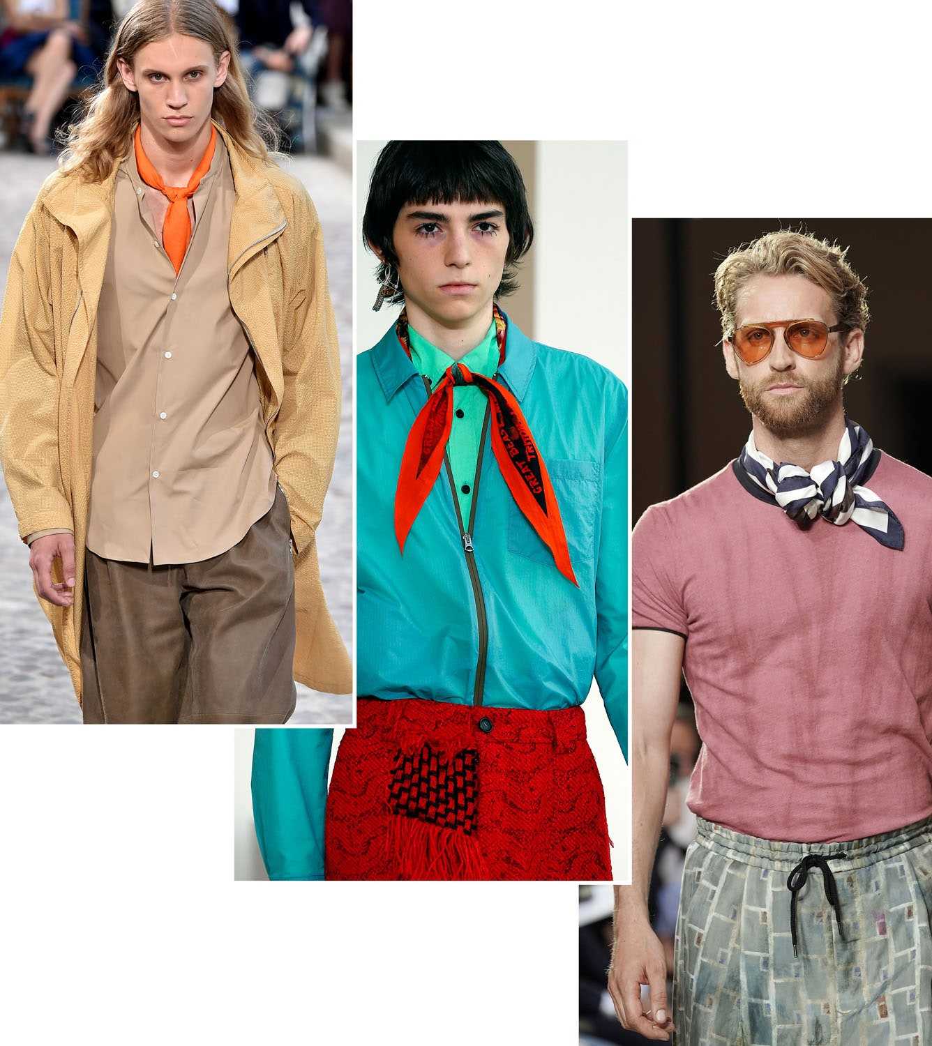 Раз уж в Россию не доставляют почти никакие украшения (из-за запрета на ввоз драгоценных металлов купить приличный перстень в Москве – та еще задачка), советуем ненадолго отвлечься от ювелирных изделий. Да и зачем надевать золотую цепь, когда можно почувствовать себя предводителем пионерского отряда (или бойскаутом – кому что больше нравится) с повязанным на манер галстука шейным платком. То, что панамы – это новые бейсболки, было понятно уже давно, так что ни Пьерпаоло Пиччоли, ни Сильвия Вентурини Фенди не открыли Америку. Да и ключи на поясе Бруклин Бекхэм носил задолго до того, как это стало мейнстримом, хотя приличного брелока ему точно не хватало – благо теперь стараниями Кима Джонса справедливость восторжествует.