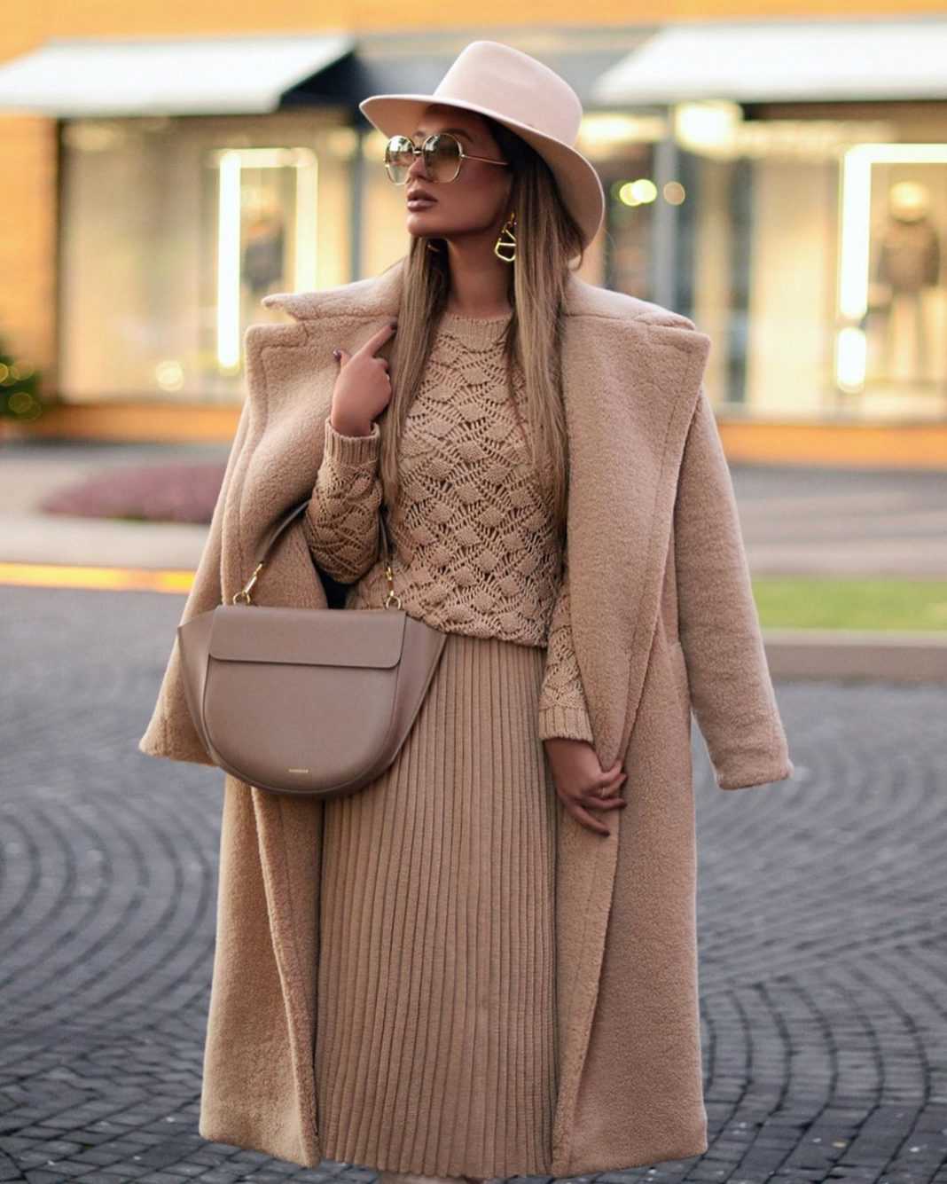 Зимой лучшим вариантом для сочетания с миди юбкой будет стильное пальто. Лучше выбрать приталенную модель.