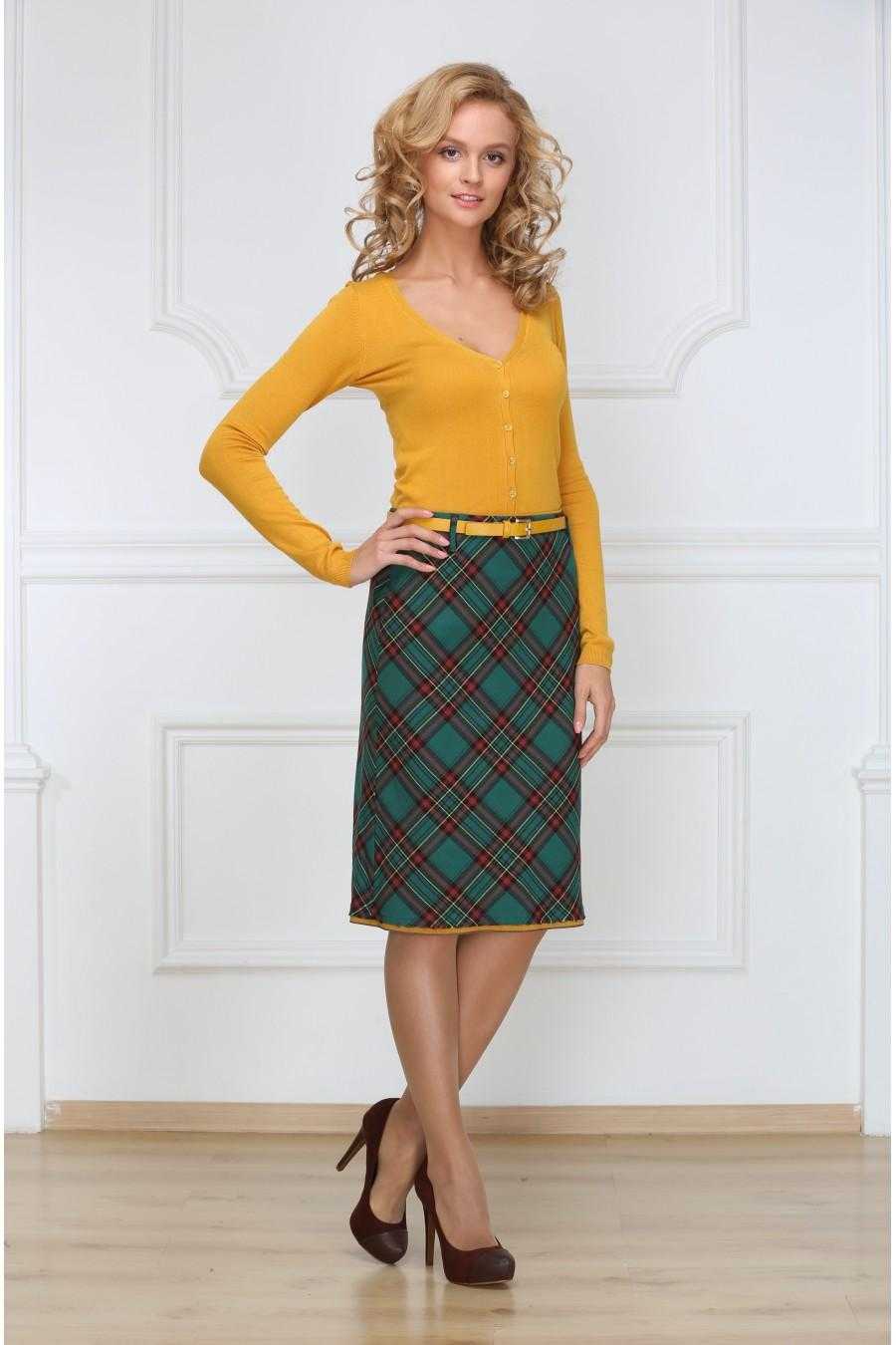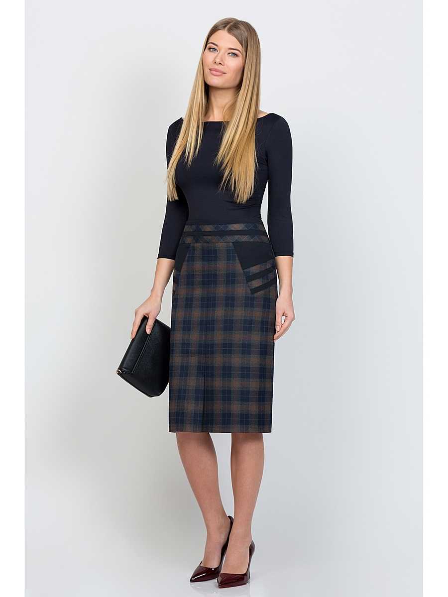 Клетчатая прямая юбка — прекрасный вариант, который подходит практичным женщинам.
