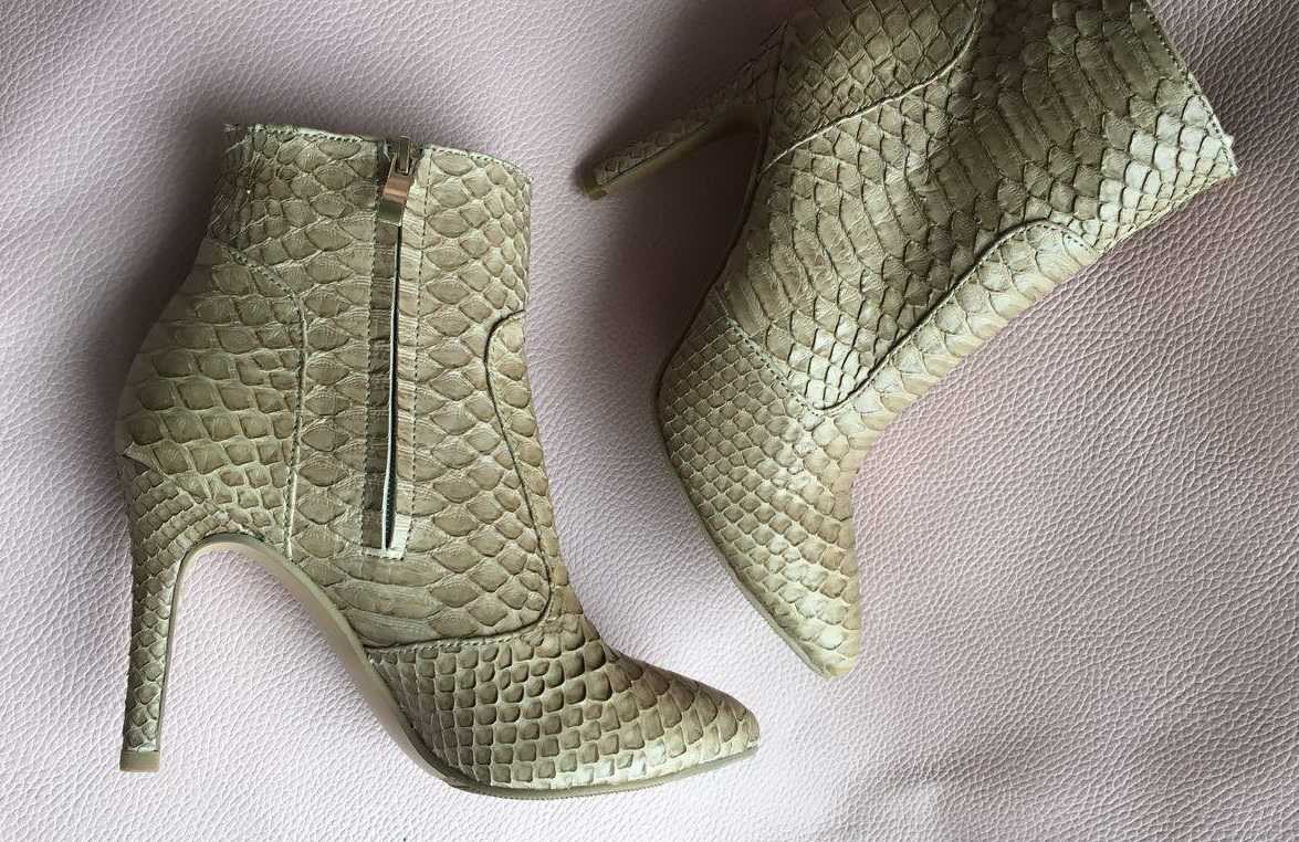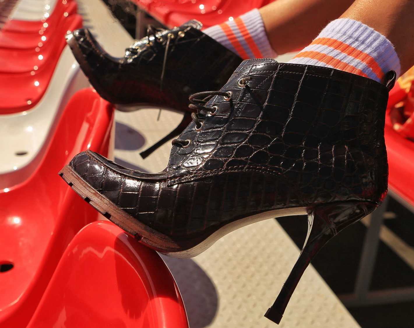 Сразу несколько известных модных брендов предложили в этом сезоне ботинки с принтом и тиснением, повторяющим расцветку кожи рептилий. Самым популярным вариантом был и остается принт, имитирующий кожу питона.