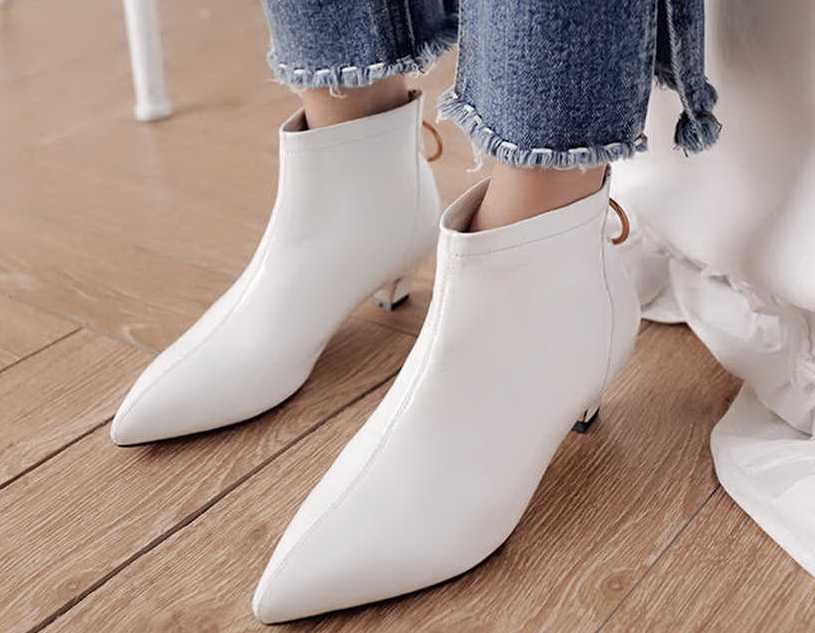 Знайте, что острый носок подходит не для всех девушек, так как он зрительно удлиняет стопу. Именно из-за этого качества такие ботинки предпочтительнее для «золушек» с небольшой ножкой. Ботинки с узким носом отлично сочетаются с широкими брюками трубами, с элегантными юбками длиной в пол, брюками кюлотами или широкими шортами.