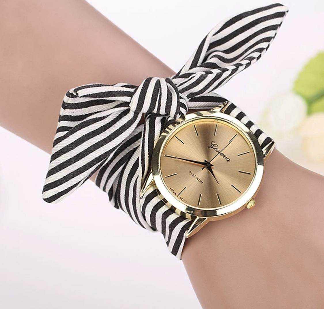 Тонкий ремешок. Изысканные миниатюрные часики с тонким ремешком придутся по душе поклонницам элегантных и женственных луков. Сам ремешок может быть изготовлен из кожи, металла или силикона. Будут востребованы и модели часов с длинным ремешком, который можно обмотать вокруг запястья несколько раз.