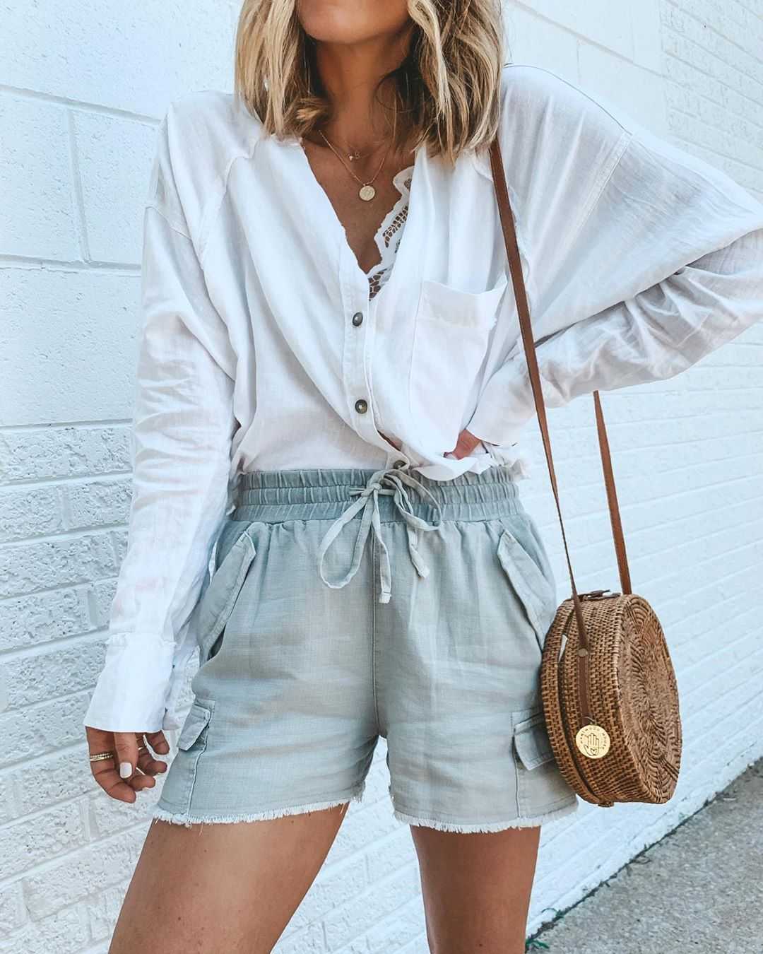 - Натуральные материалы. Одним из самых хороших вариантов на лето можно назвать шортики из натуральных материалов. Они отлично пропускают воздух и в них не будет слишком жарко;