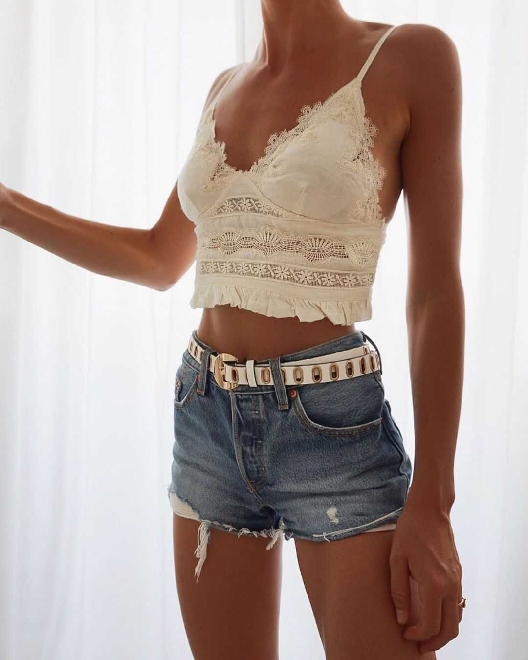 Очень красиво смотрятся миниатюрные бюстье в кружевах и узорах, которые ненавязчиво выглядывают из-под самой обычной майки, такой ход выглядит безумно игриво и универсально, сейчас ты идешь по городу в расслабленном луке, а уже через секунду, готова к свиданию.