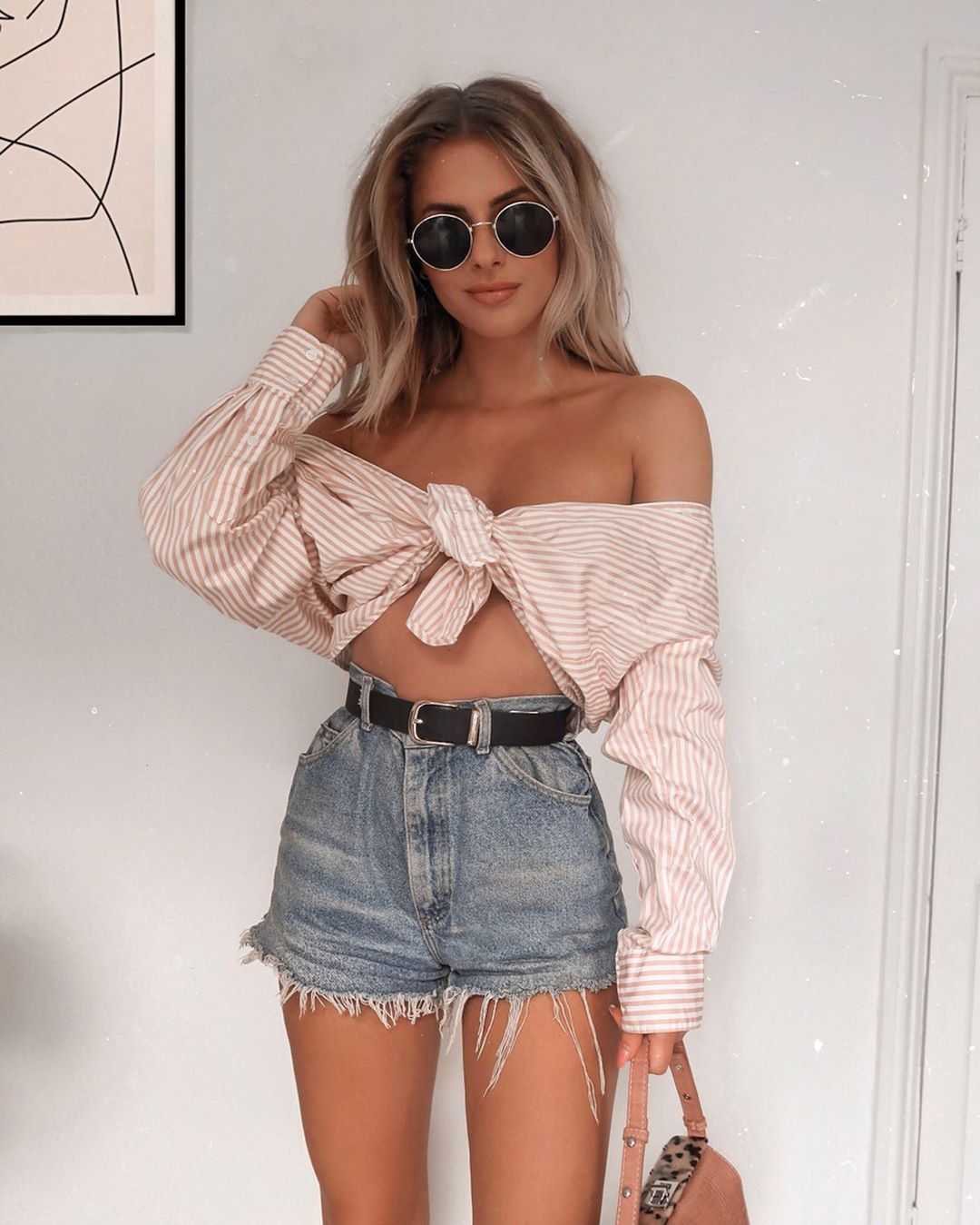 Выбирайте шорты с завышенной талией, чтобы скрыть легкую полноту. Внимательно изучите различные цветы и фасоны, подберите то что наиболее удачно будет сидеть на вас. Многие люди предполагают, что их можно носить только с заправленным верхом. Да, так они действительно выглядят лучше. Но вы также можете носить их как обычные шорты. Это самым универсальный предмет, который необходим вам этим летом Соедините их с обычной майкой, плоскими сандалиями и парой милых аксессуаров. Идеально вариант для лета!