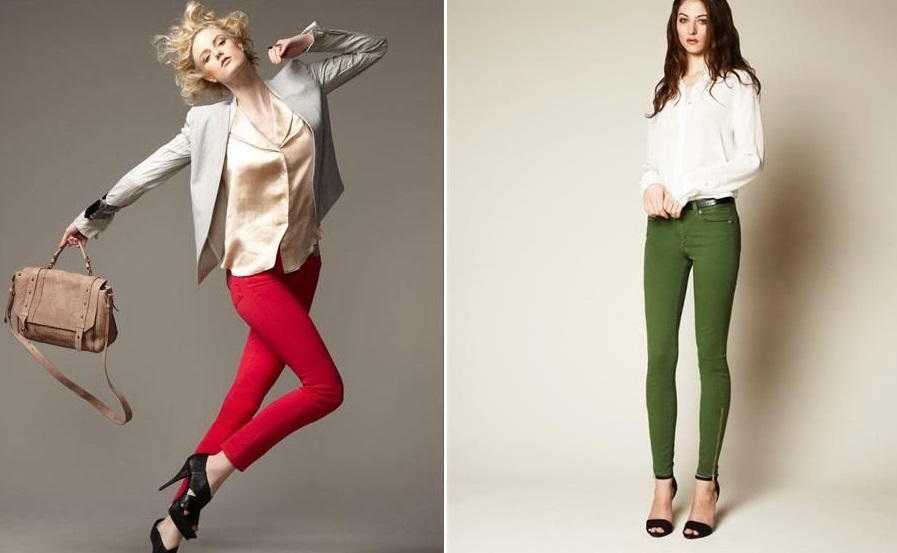 Джинсы-скинни очень популярны в этом году. Летом будут выглядеть изящно и торжественно белые скинни с майкой того же цвета. А к осени было бы неплохо обзавестись джинсами тёмных тонов.