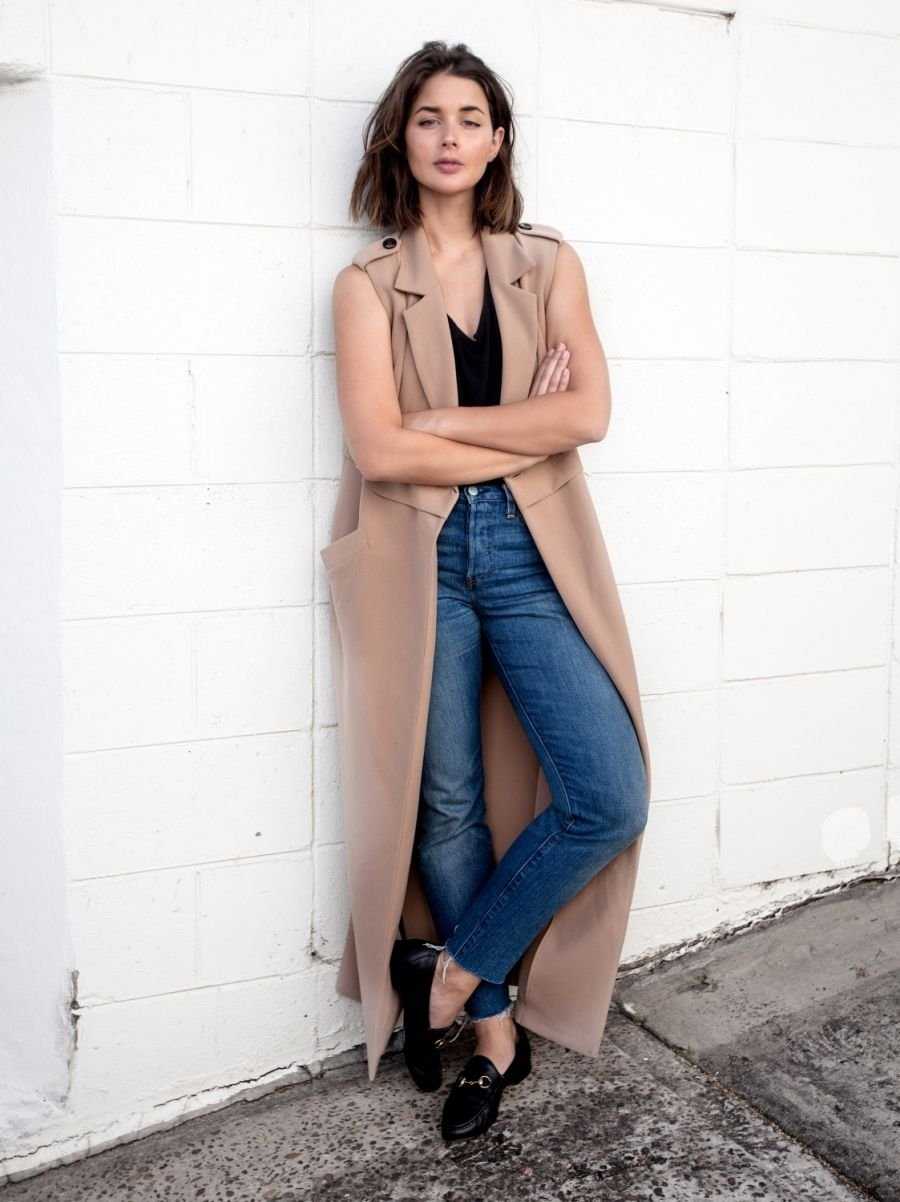 Облегающими джинсами-скинни. Получается очень практичный и удобный лук. Если добавить светлую блузу и жакет – получится достаточно строгий офисный образ, если яркую футболку или топ – наряд для вечерних прогулок.