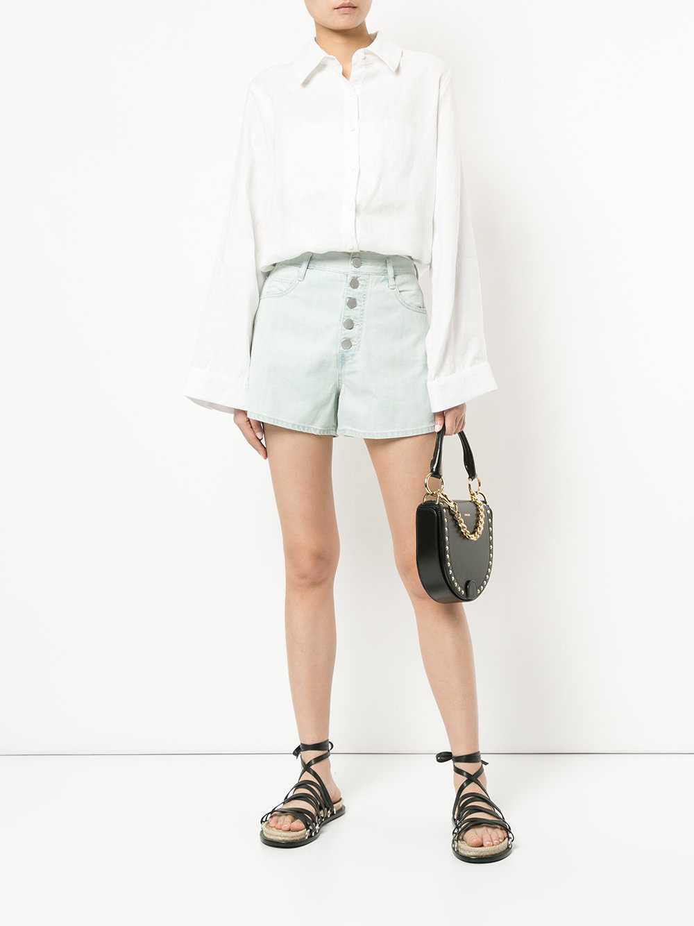 - Шорты с завышенной талией — хит прошлого сезона, плавно перешедший в нынешний. Они подчеркнут красивые ягодицы и тонкую талию.