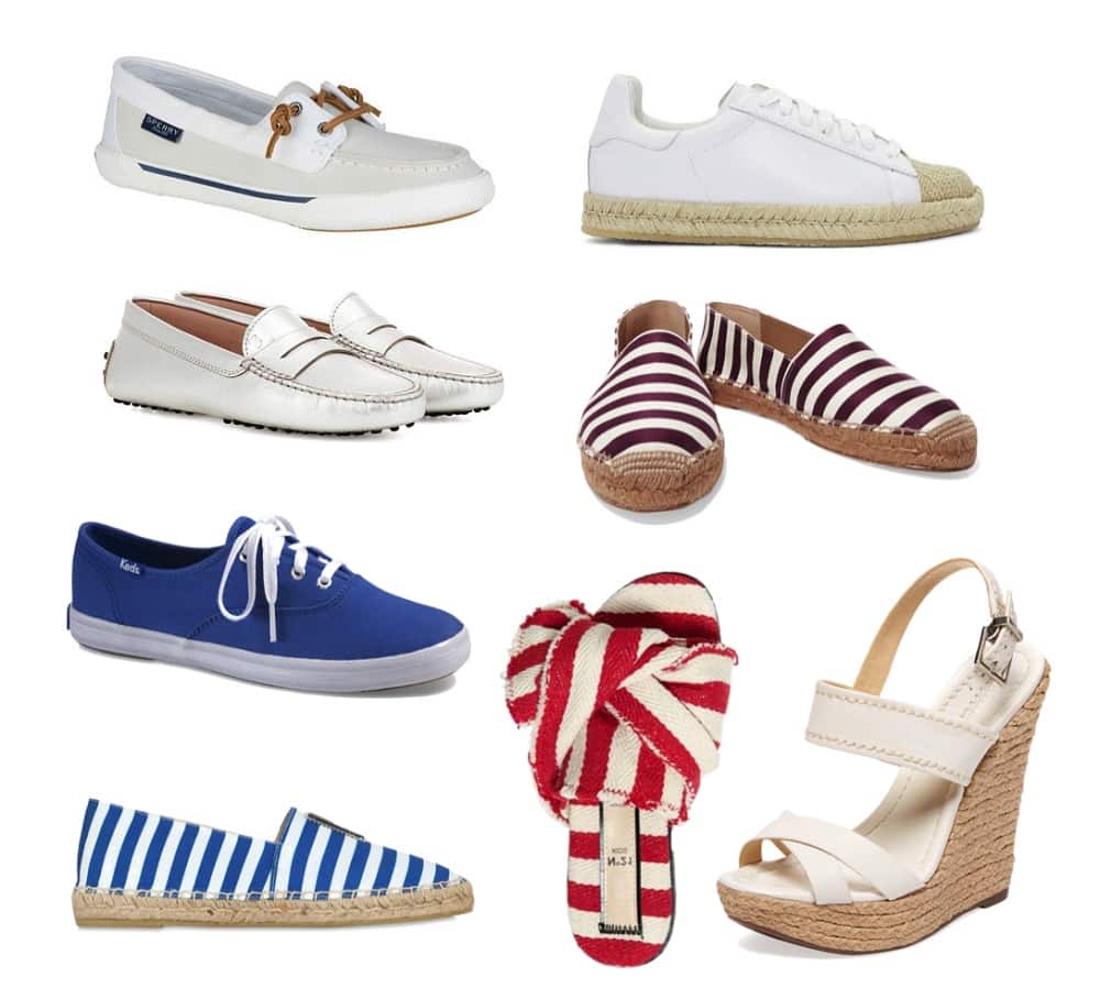 Можно встретить и платья более свободного кроя, выполненные из ткани в стиле милитари. Под такие модели выбор обуви более широкий, это могут быть босоножки на высоком тонком каблуке, с открытым носом, с небольшой шнуровкой на щиколотке, на изящной танкетке. При выборе обуви главное не забывать о цветовой гамме, которая должна соответствовать требованиям морского стиля.