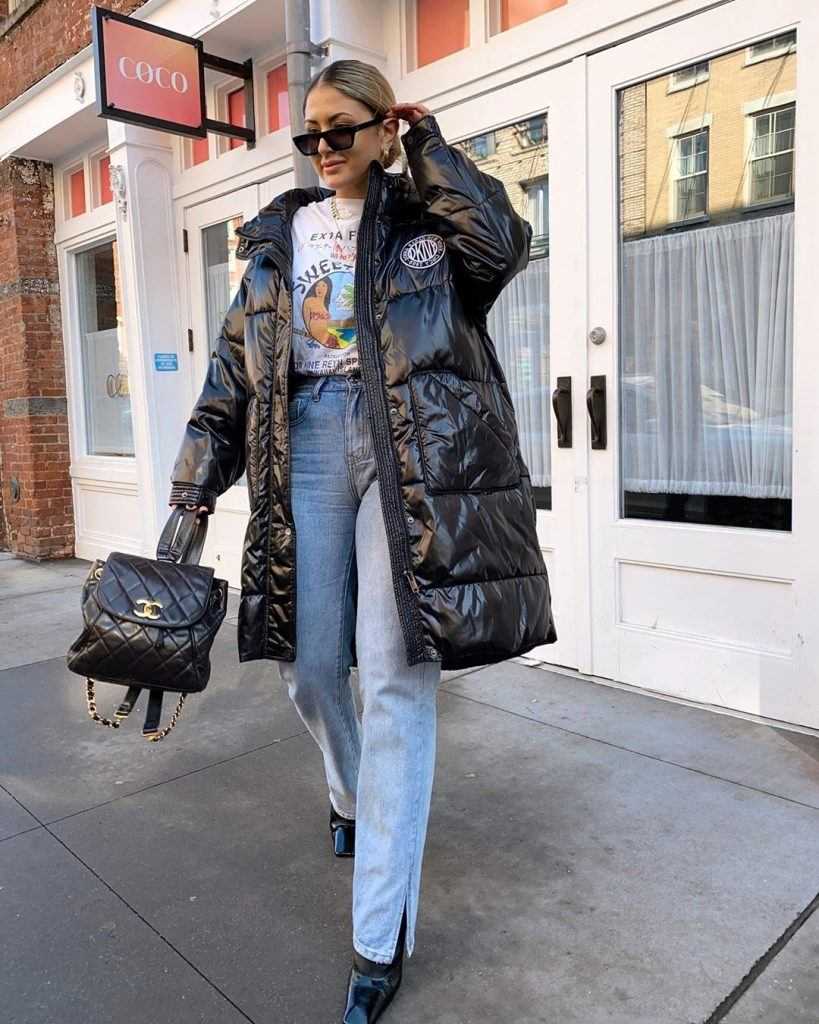 Как носить пуховики с разной одеждой